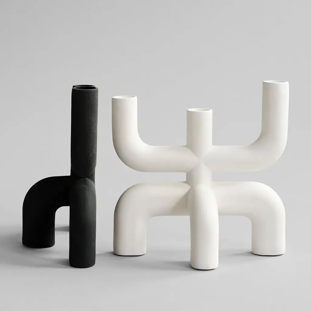 A tribute to the Cobra Arts Movement of the 1960s, the collection is the epitome of quirky vases and candleholders that will add joy to any interior setting. Think whimsical, soft and organic shapes unmistakably reminiscent of human silhouettes and curves. True to the Cobra artists way of working, the series takes its starting point in naive hand sketches leading to bodily silhouettes. The candle holders are made of ceramic and as it is a hand glazed natural product, the colours may vary slightly. Designed by Kristian Sofus Hansen & Tommy Hyldahl.