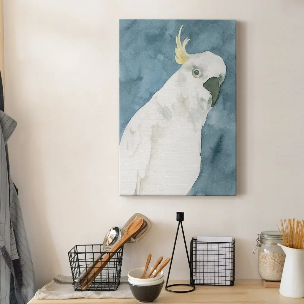 Cockatoo Portrait I Premium Gallery Wrapped Canvas - Ready to Hang A premium hand stretched gallery wrapped canvas print created to last. Featuring a beveled a solid wood stretcher bar, each piece comes ready to hand 6 SIZES AVAILABLE 8''X12'' - Overall Size 12''X18'' - Overall Size 18''X27'' - Overall Size 24''x36'' - Overall Size 32''x48'' - Overall Size 40''x60'' - Overall Size Each piece is made to order. Built to Last Each piece comes ready to hang Solid wood stretcher Fade and Water resistant Made domestically