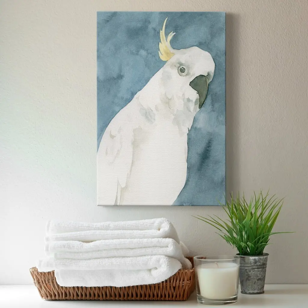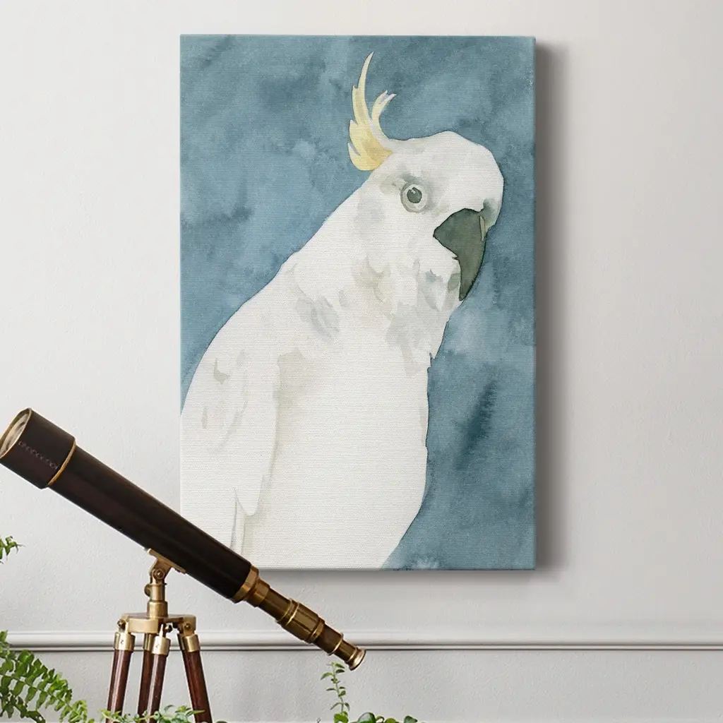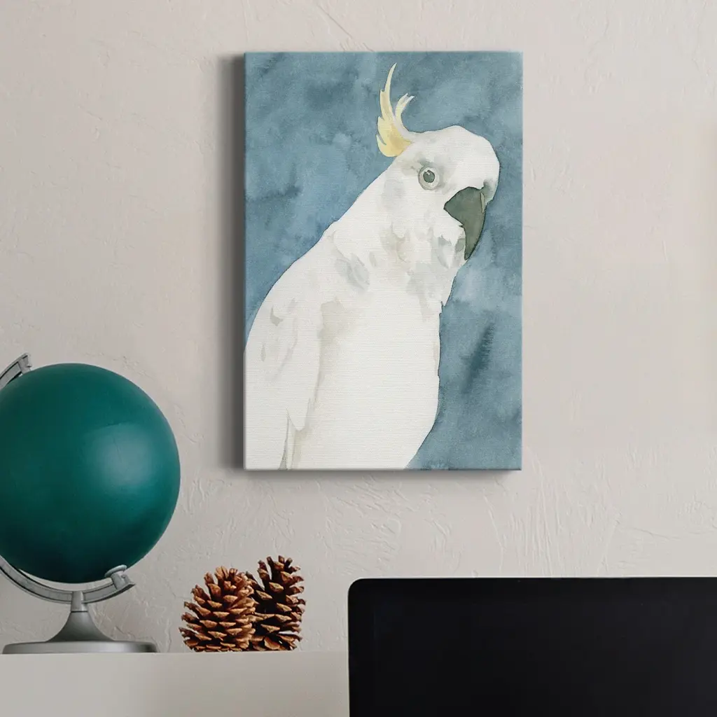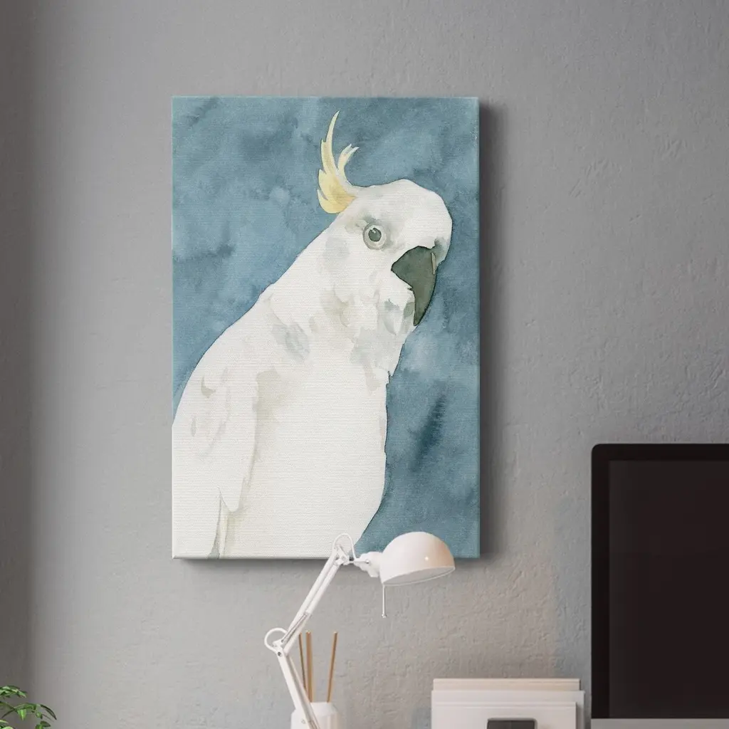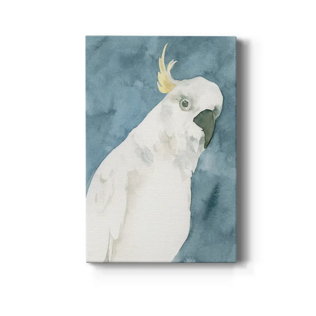 Cockatoo Portrait I Premium Gallery Wrapped Canvas - Ready to Hang A premium hand stretched gallery wrapped canvas print created to last. Featuring a beveled a solid wood stretcher bar, each piece comes ready to hand 6 SIZES AVAILABLE 8''X12'' - Overall Size 12''X18'' - Overall Size 18''X27'' - Overall Size 24''x36'' - Overall Size 32''x48'' - Overall Size 40''x60'' - Overall Size Each piece is made to order. Built to Last Each piece comes ready to hang Solid wood stretcher Fade and Water resistant Made domestically