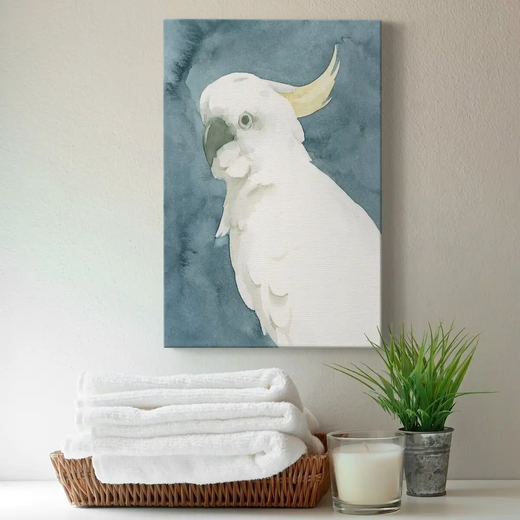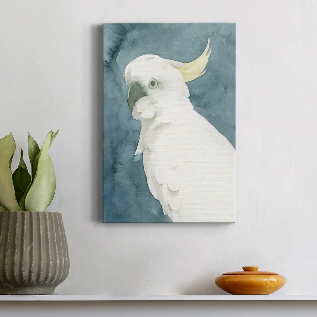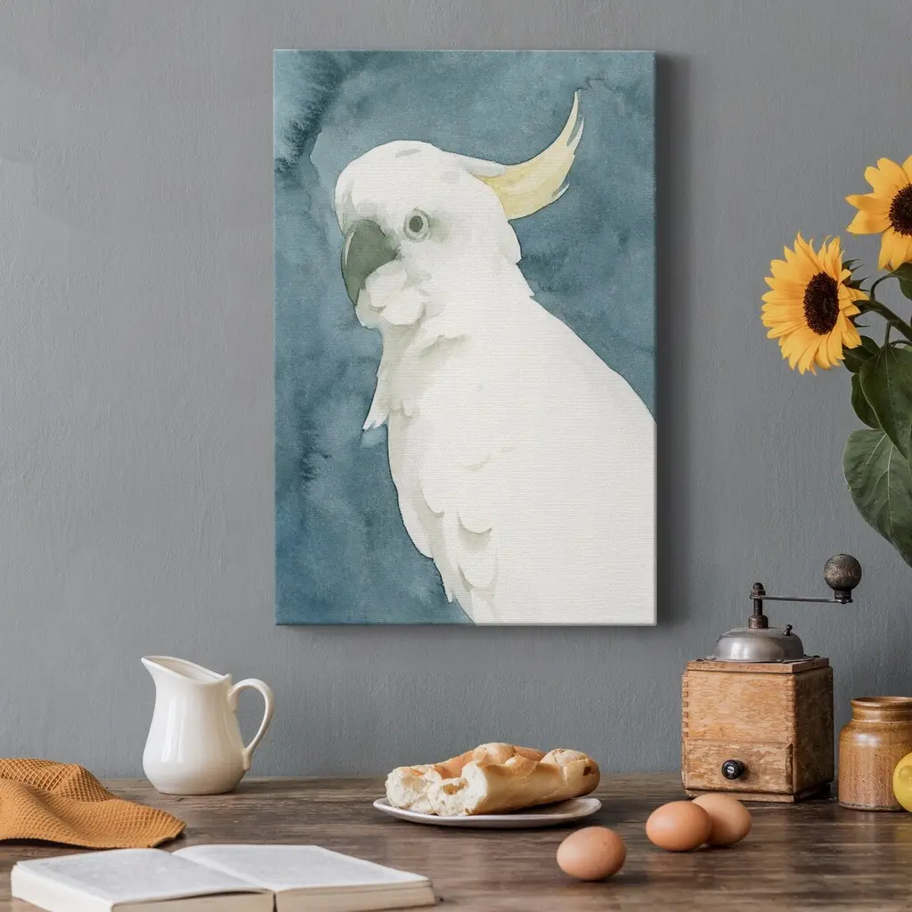 Cockatoo Portrait II Premium Gallery Wrapped Canvas - Ready to Hang A premium hand stretched gallery wrapped canvas print created to last. Featuring a beveled a solid wood stretcher bar, each piece comes ready to hand 6 SIZES AVAILABLE 8''X12'' - Overall Size 12''X18'' - Overall Size 18''X27'' - Overall Size 24''x36'' - Overall Size 32''x48'' - Overall Size 40''x60'' - Overall Size Each piece is made to order. Built to Last Each piece comes ready to hang Solid wood stretcher Fade and Water resistant Made domestically