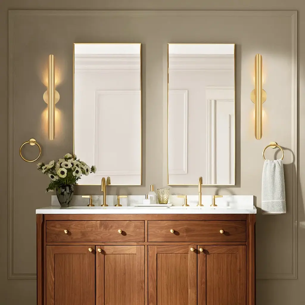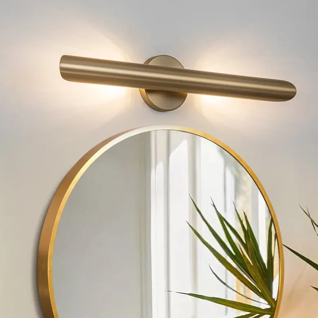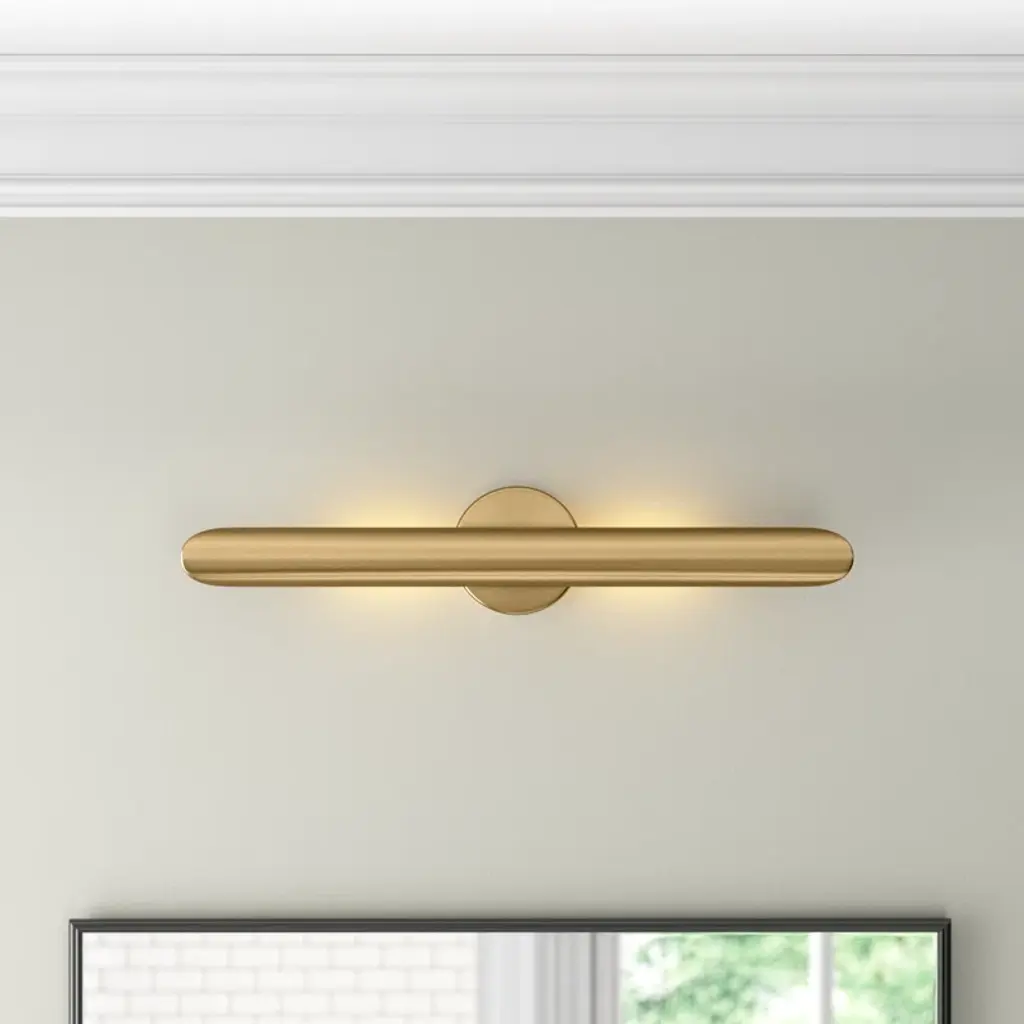 Brighten up your bathroom or bedroom with our 2-light vanity fixture. Bold and streamlined, it's crafted from iron with a mod finish. A circular backplate and a vertical (or horizontal) bar create a dynamic yet minimalist appearance. Two LEDs are integrated into the piece, and they're compatible with dimmer switches to aid in controlling how bright your room is – day or night. Plus, it's damp-rated, making it safe to use in high-moisture environments.