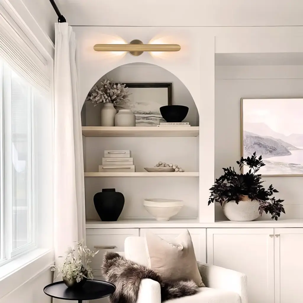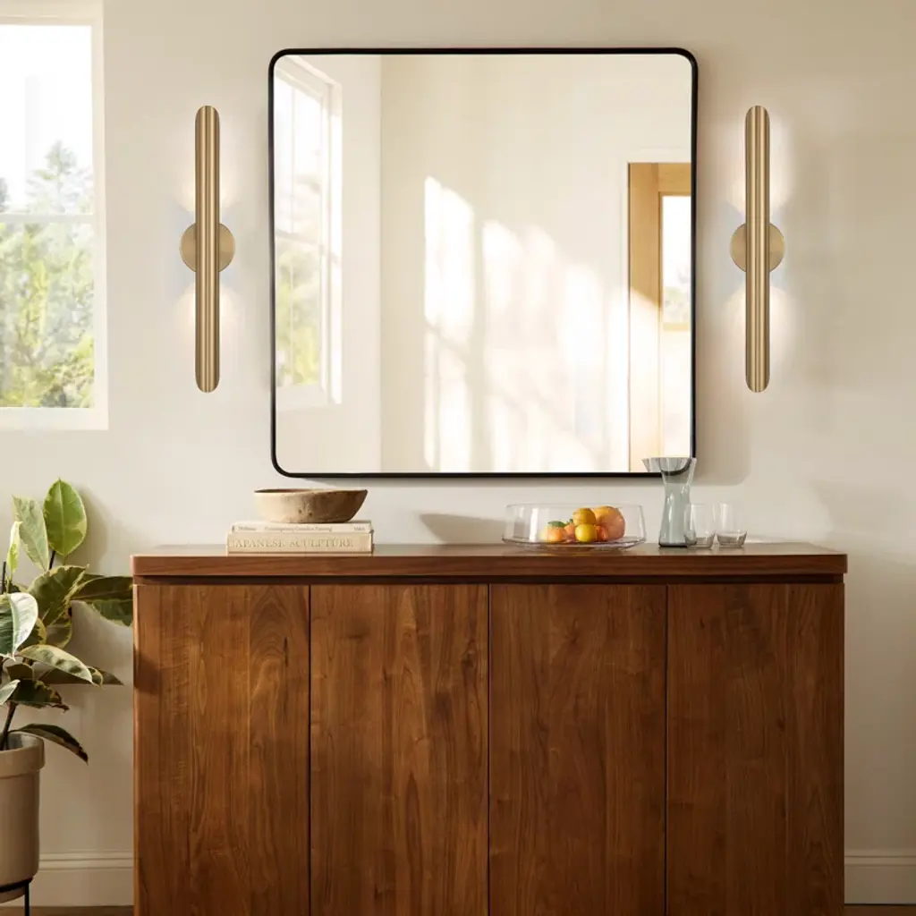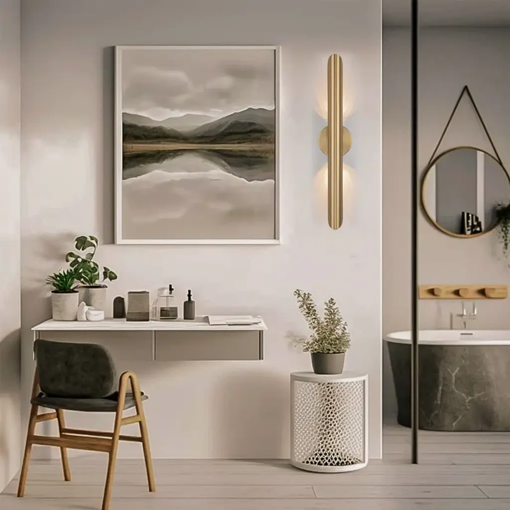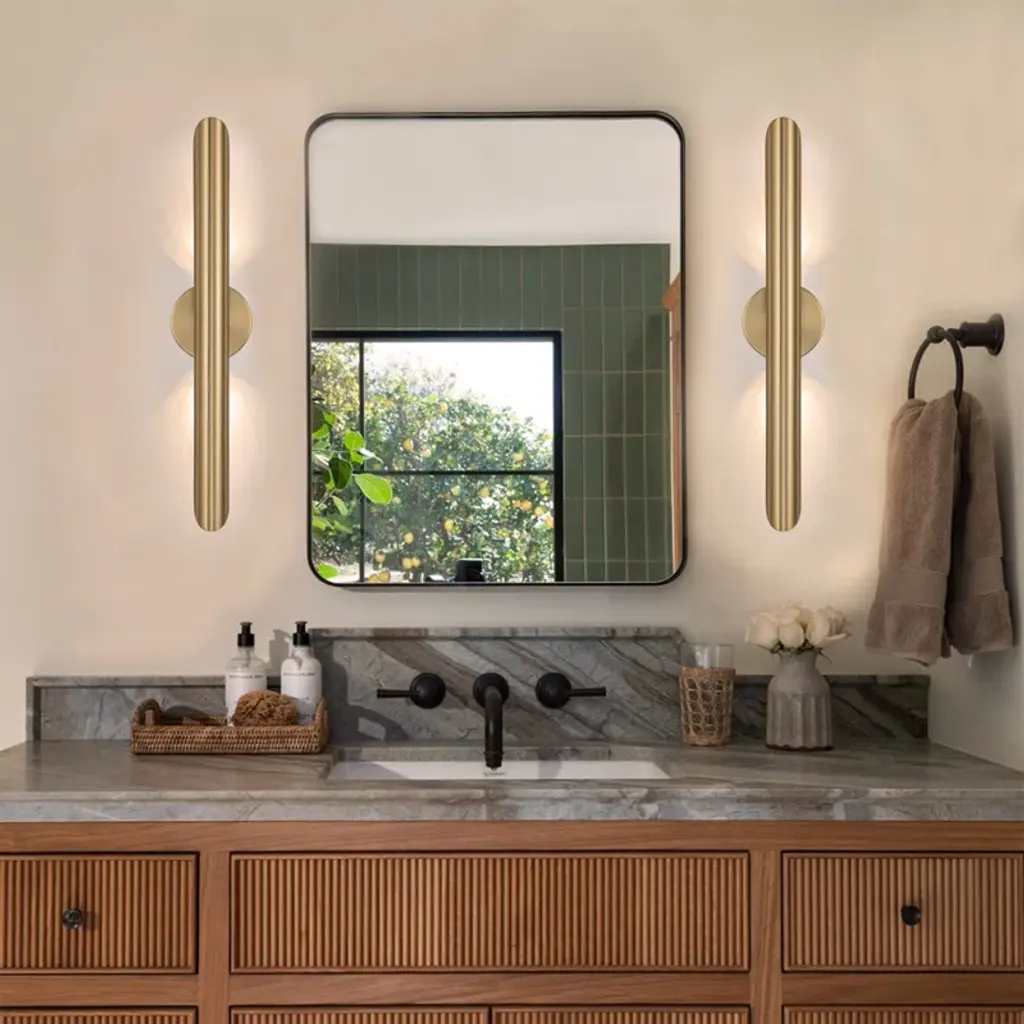 Brighten up your bathroom or bedroom with our 2-light vanity fixture. Bold and streamlined, it's crafted from iron with a mod finish. A circular backplate and a vertical (or horizontal) bar create a dynamic yet minimalist appearance. Two LEDs are integrated into the piece, and they're compatible with dimmer switches to aid in controlling how bright your room is – day or night. Plus, it's damp-rated, making it safe to use in high-moisture environments.
