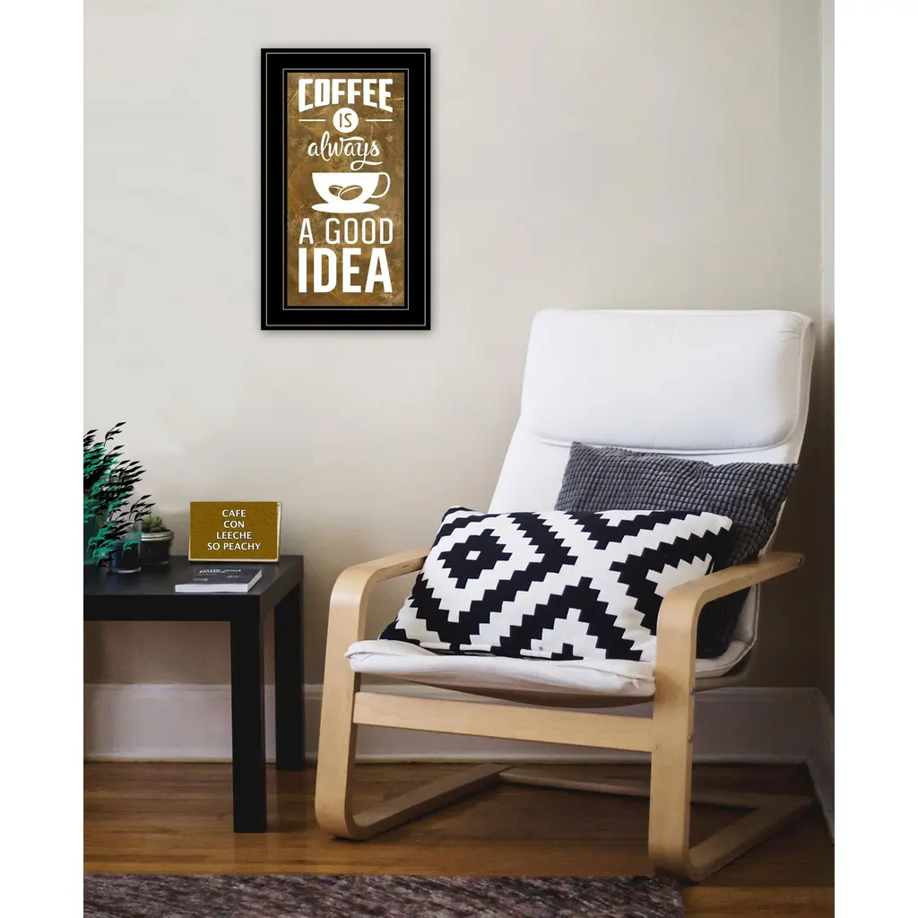 This coffee is always a good idea 3 black framed print wall art will add a beautiful decorative accent to your decor. This print is a visual artistic expression that allows you to decorate your space in style. Reproduced for you on wood, this hanging decorative accent will be a trendy and fashionable way to dress your walls in a rustic and modern farmhouse vibe. Adding this hanging wall art to your space to make your room feel more finished and attractive. Instantly liven up your space with this art that brings color and dimension to your walls. 21" H x 12" W x 1" D