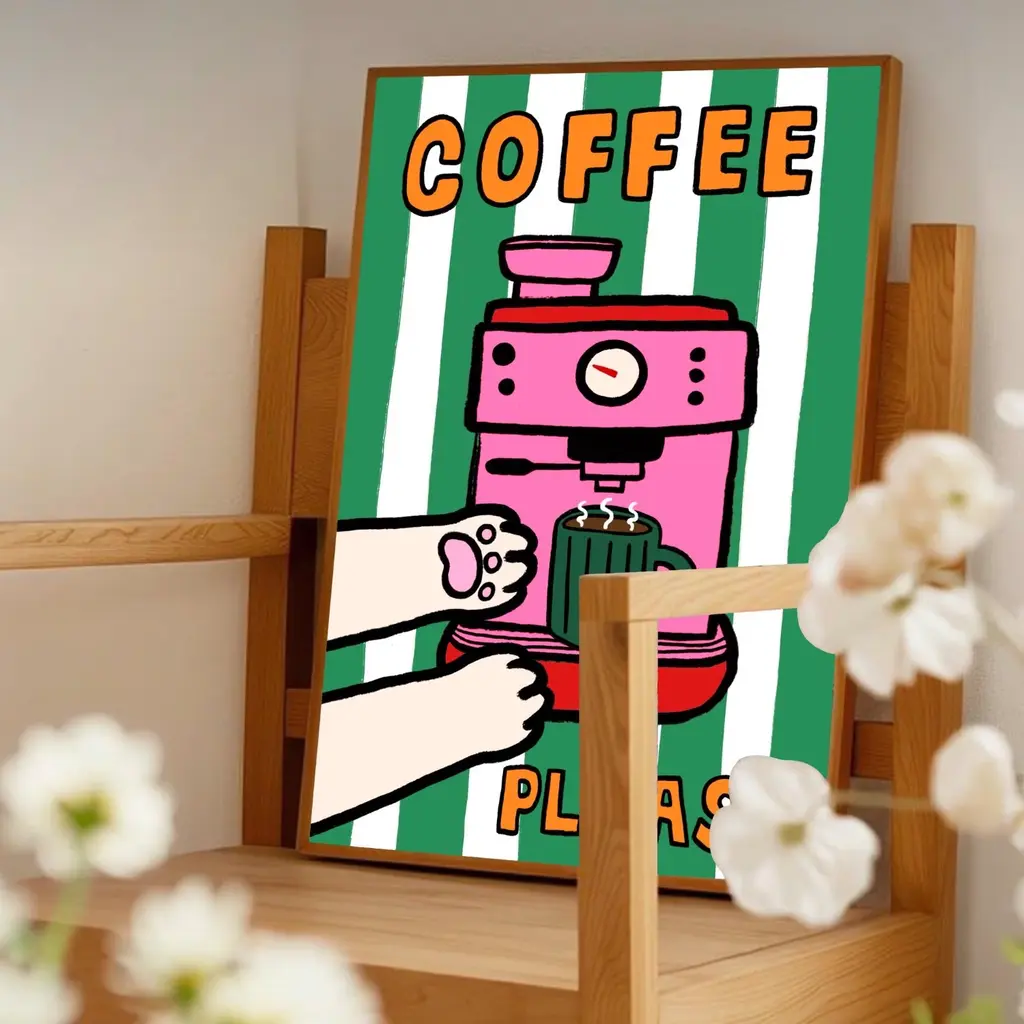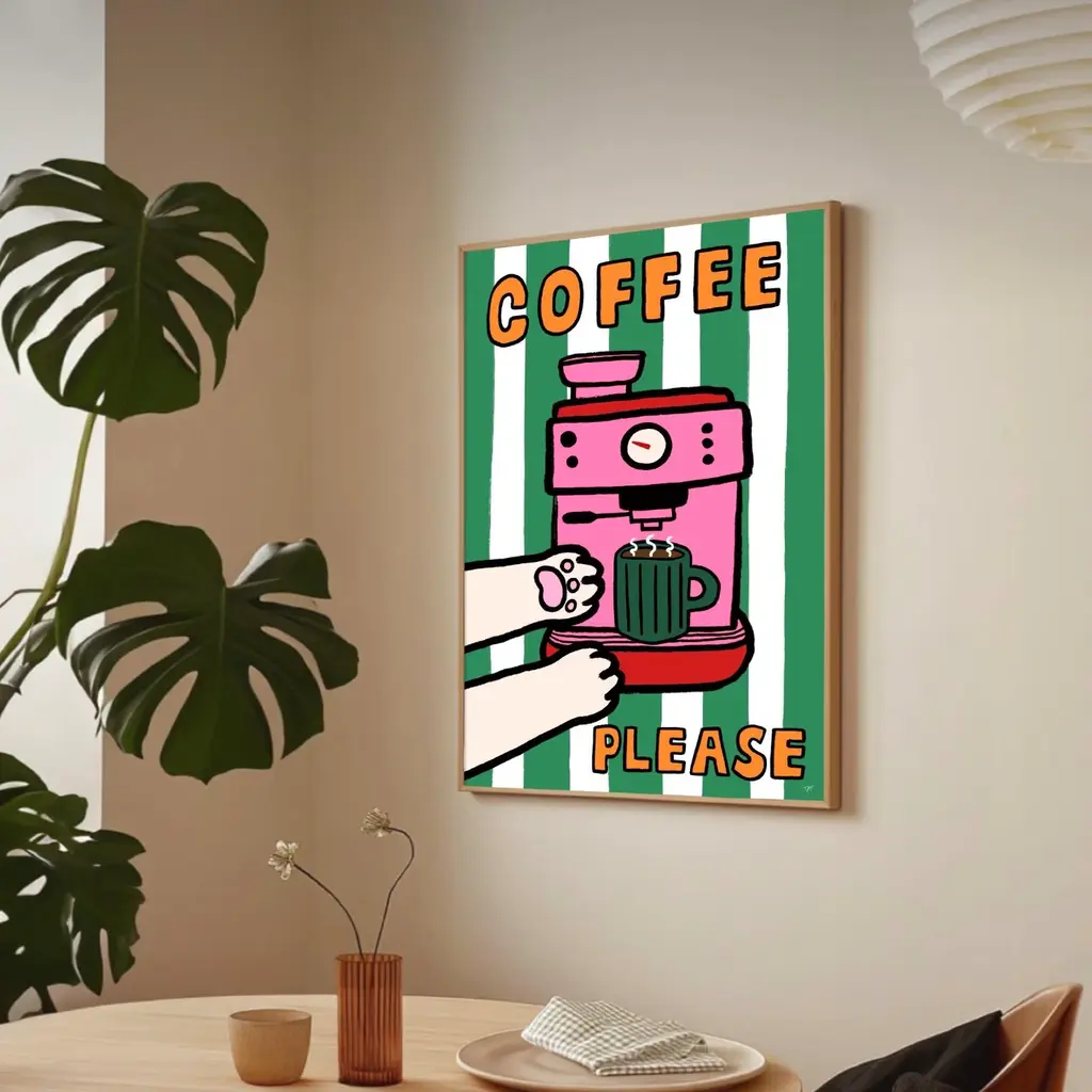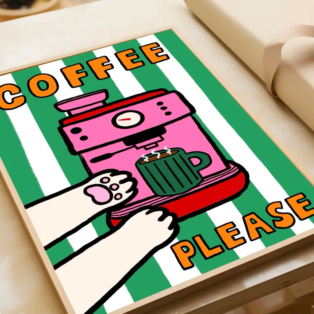 Coffee Please - Cat Art Print - Medium Illustrated by Maria. This print is perfect for all cat lovers alike! Printed in the U.K.Printed on premium matte, fine art, archival paperPaper weight: 230 gsmSold without a frame.