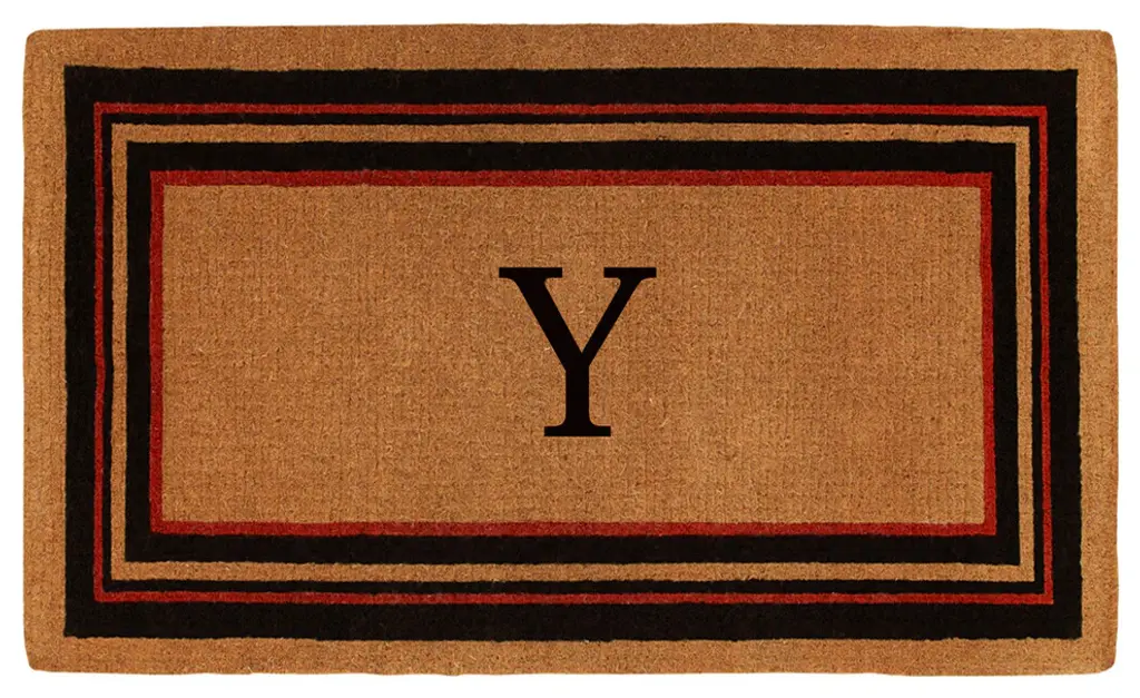 Offer a warm welcome to all who visit with this Embossed Monogram L Coir Mat. Woven from 100% natural coconut fiber, the colorful design is eco-friendly and perfect for both indoor and outdoor use. We use fade-resistant, colorfast dye to keep the mat's artwork looking fresh year after year. The thick fibers absorb moisture, making them extremely durable and weather resistant. The coir provides an anti-skid surface that is also great for trapping dust and dirt. Each mat features a recycled rubber backing to keep it in place.