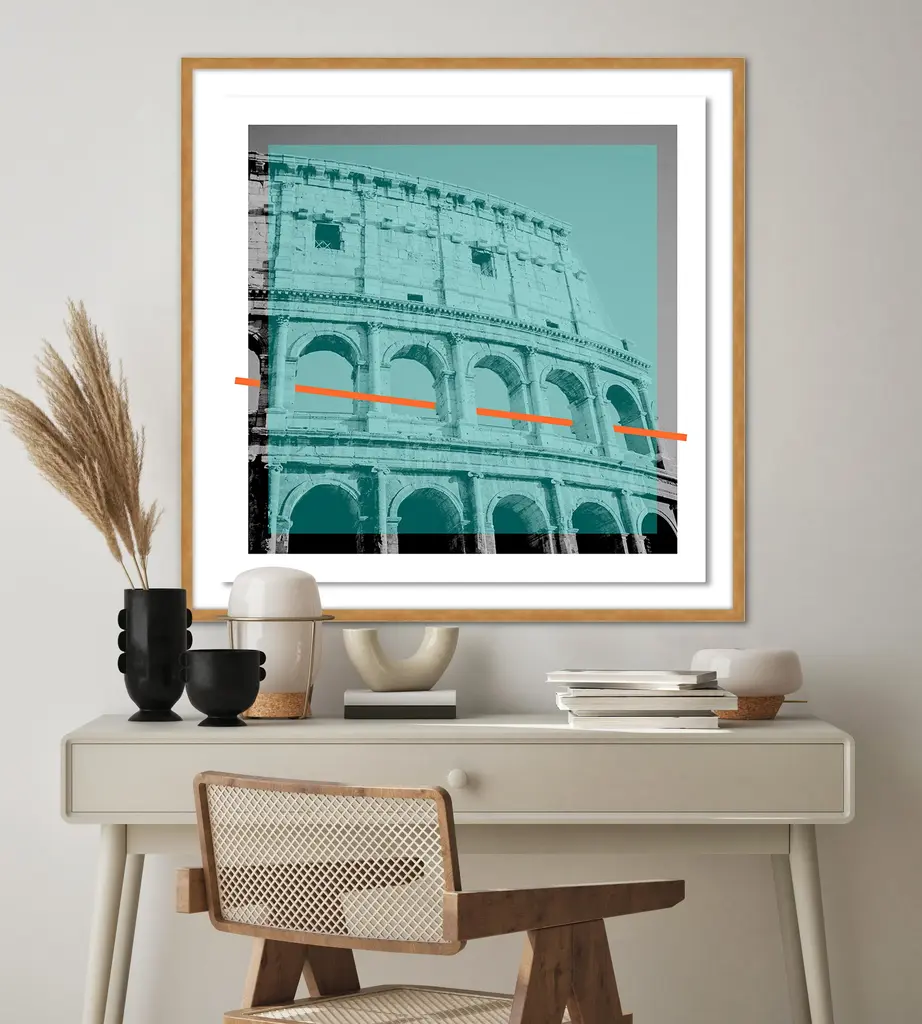 Coliseum Deconstruct by Coup d'Esprit, Contemporary Photograph in Gold, Medium Overall Size: 36x36 Frame Color: Gold