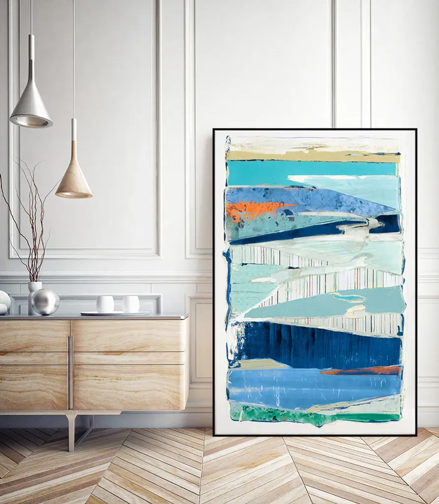 Your ready to hang artwork is printed on canvas then stretched and mounted to a 2-inch thick - hand stained black wood frame. Arrives at your door complete with an easy to use self-leveling hangking kit.