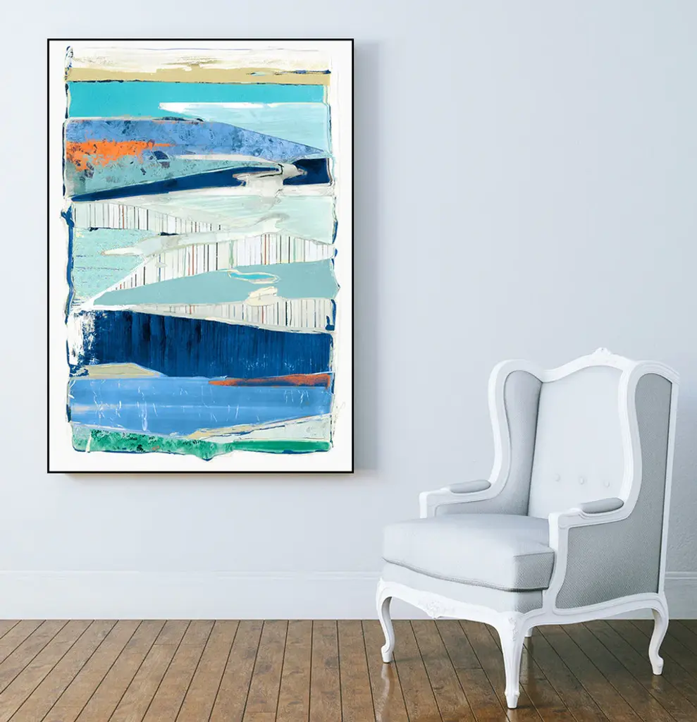Your ready to hang artwork is printed on canvas then stretched and mounted to a 2-inch thick - hand stained black wood frame. Arrives at your door complete with an easy to use self-leveling hangking kit.
