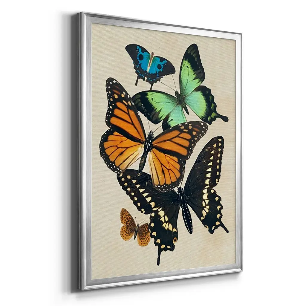 Collaged Butterflies I Premium Framed Print - Ready to Hang A Premium Framed Print created to last. Framed in distressed wood and available in an array of sizes and colors Featuring a beveled a solid wood stretcher bar, each piece comes ready to hand 4 SIZES AVAILABLE 30.5''X42.5'' - Overall Size 26.5'X36.5'' - Overall Size 22.5''x30.5'' - Overall Size 18.5''x24.5'' - Overall Size Each piece is made to order. Each piece comes with hanging hardware. Made in the USA Ready to Hang