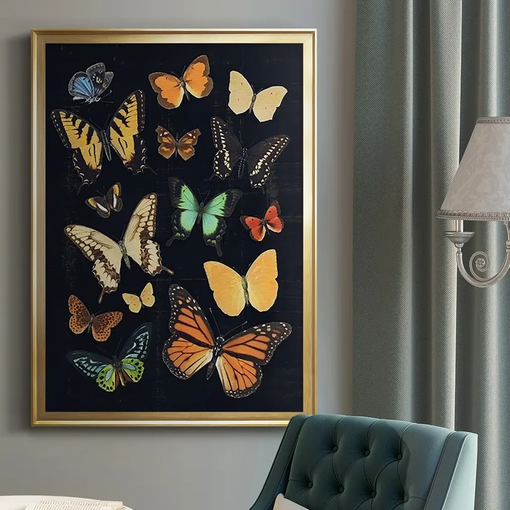 Collected Flutter III Premium Framed Print - Ready to Hang A Premium Framed Print created to last. Framed in distressed wood and available in an array of sizes and colors Featuring a beveled a solid wood stretcher bar, each piece comes ready to hand 4 SIZES AVAILABLE 30.5''X42.5'' - Overall Size 26.5'X36.5'' - Overall Size 22.5''x30.5'' - Overall Size 18.5''x24.5'' - Overall Size Each piece is made to order. Each piece comes with hanging hardware. Made in the USA Ready to Hang
