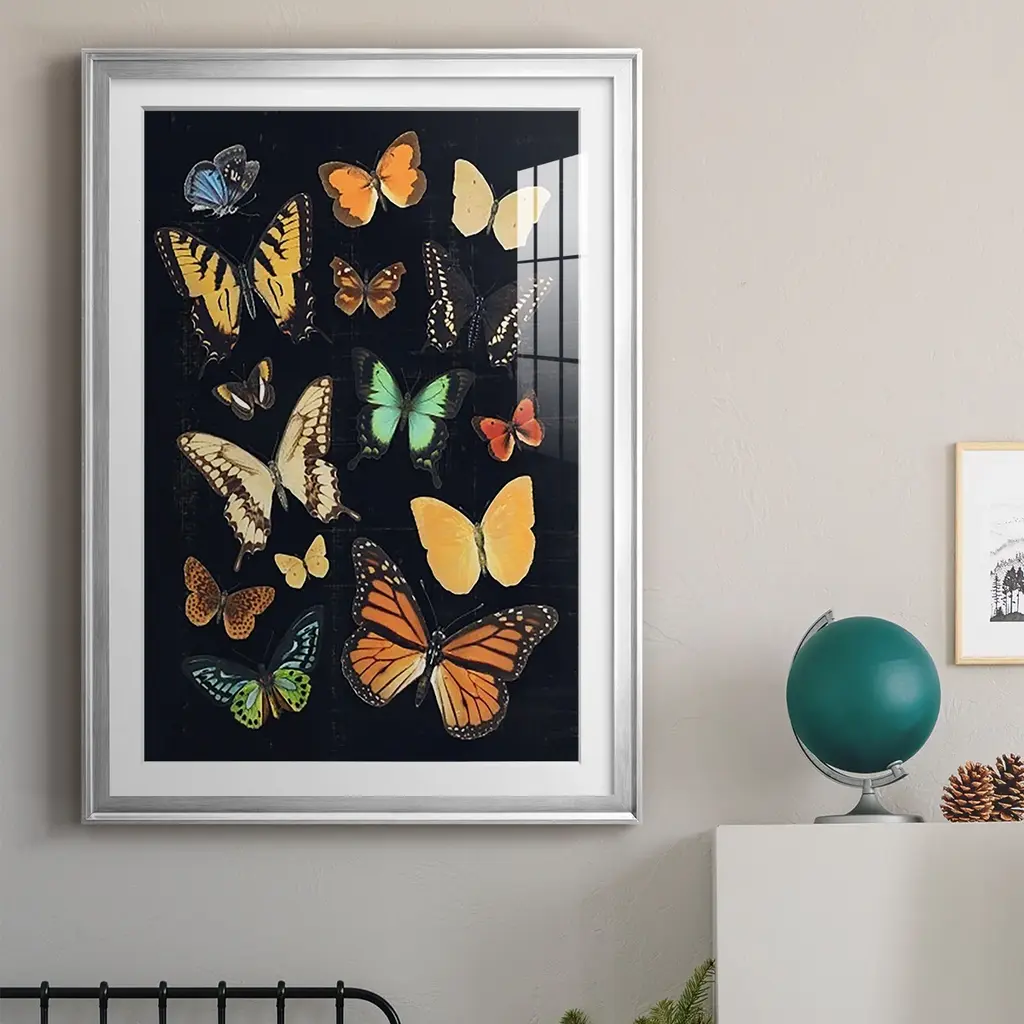 Collected Flutter III Premium Framed Print - Ready to Hang A Premium Framed Print created to last. Framed in distressed wood and available in an array of sizes and colors Featuring a beveled a solid wood stretcher bar, each piece comes ready to hand 4 SIZES AVAILABLE 30.5''X42.5'' - Overall Size 26.5'X36.5'' - Overall Size 22.5''x30.5'' - Overall Size 18.5''x24.5'' - Overall Size Each piece is made to order. Each piece comes with hanging hardware. Made in the USA Ready to Hang Giclee Paper Print Acrylic Glass Beveled Matt Board