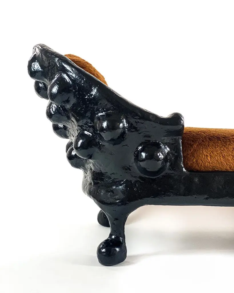 Crafted by hand, the Shell Chaise is a playful yet demanding presence that explores a new way of thinking in regards turn of the century Victorian furniture. Torn down, re-built, and formed, each chaise is a unique functional art piece constructed from discarded Victorian era furniture.Handcrafted in our Georgia, US studio, this chaise is crafted from a wood base. The piece is then sculpted with a complex gypsum, pulp, and epoxy mix. After curing, the chaise is sanded then a hand applied fiberglass layer coats the entire piece to add to durability and longevity. Finally, it is upholstered with custom 1" German mohair fabric.Brent Warr Studios founder Brent Warr was raised in Georgia, USA and studied at Auburn University’s college of Architecture, Design, and Construction. Before moving to the back to Georgia to start his furniture and lighting studio, he moved to NYC to work for esteemed Interior and Architecture firms Meyer Davis Studio and Yabu Pushelberg. Now located in Bainbridge, Georgia, Warr’s furniture, lighting, sculptures, and interiors projects are defined by a studied balance of fluidity and structure, composition and function. His practice is both intuitive and informed by an understanding of history, process, and materials. Above all, Warr’s guiding principles are humor and storytelling. Brent Warr has been featured in Interior Design Magazine, Architectural Digest, Elle Decor, and Vogue Living to name a few.