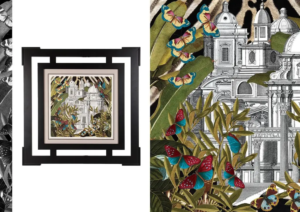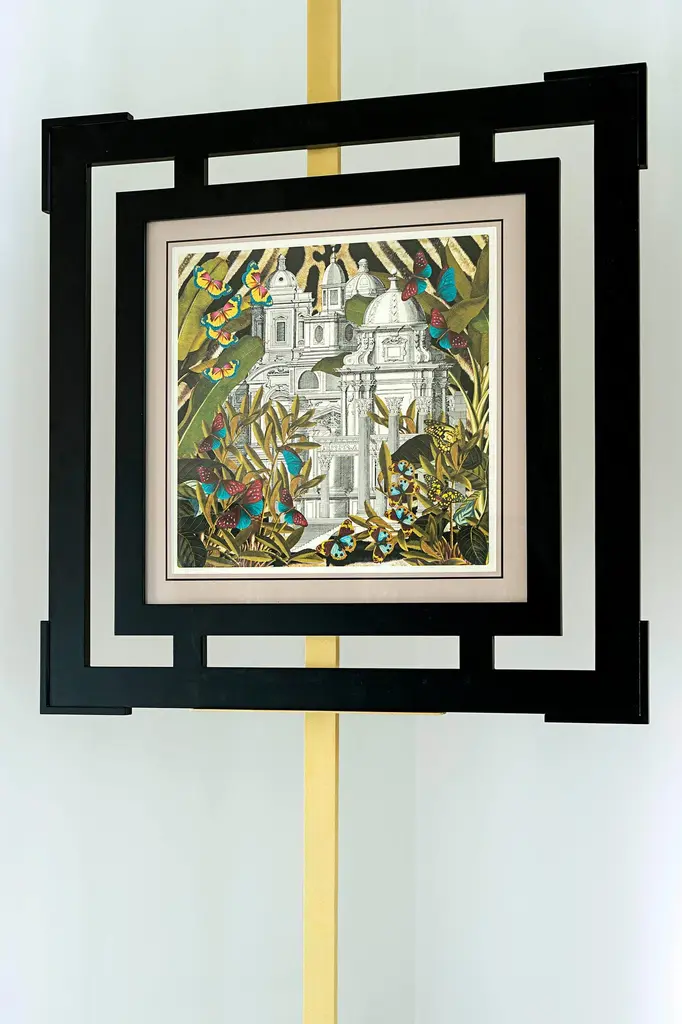 Multicolor numbered giclèe print on 100% cotton paper. Hand detailed taupe passepartout. Lacquered black Tulipier wood designer frame.From the Jungle Dome collection designed by Massimiliano Giornetti long time creative director for Salvatore Ferragamo in collaboration with Artecornici design.This collection was produced in 2019 and presented during the last Edition of the Milan Furniture Fair.We at Artecornici design have produced for 40 years hand colored art prints, artisan frames, illumination, decorative accessories and furniture completely in Tuscany.The price of this piece may be subjected to VAT (@22%) if applicable.
