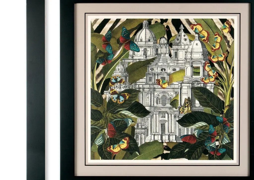 Multicolor numbered giclèe print on 100% cotton paper. Hand detailed taupe passepartout. Lacquered black Tulipier wood designer frame.From the Jungle Dome collection designed by Massimiliano Giornetti long time creative director for Salvatore Ferragamo in collaboration with Artecornici design.This collection was produced in 2019 and presented during the last Edition of the Milan Furniture Fair.We at Artecornici design have produced for 40 years hand colored art prints, artisan frames, illumination, decorative accessories and furniture completely in Tuscany.The price of this piece may be subjected to VAT (@22%) if applicable.