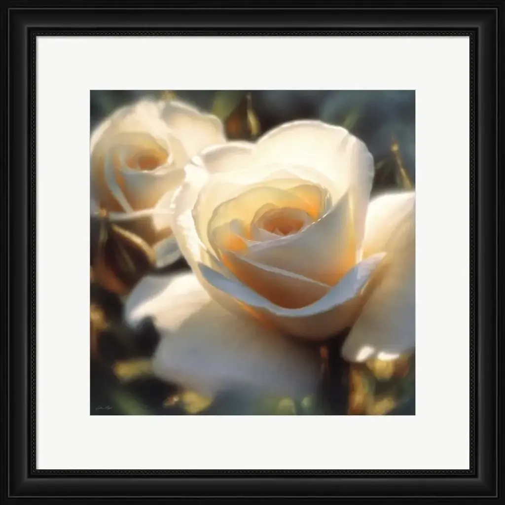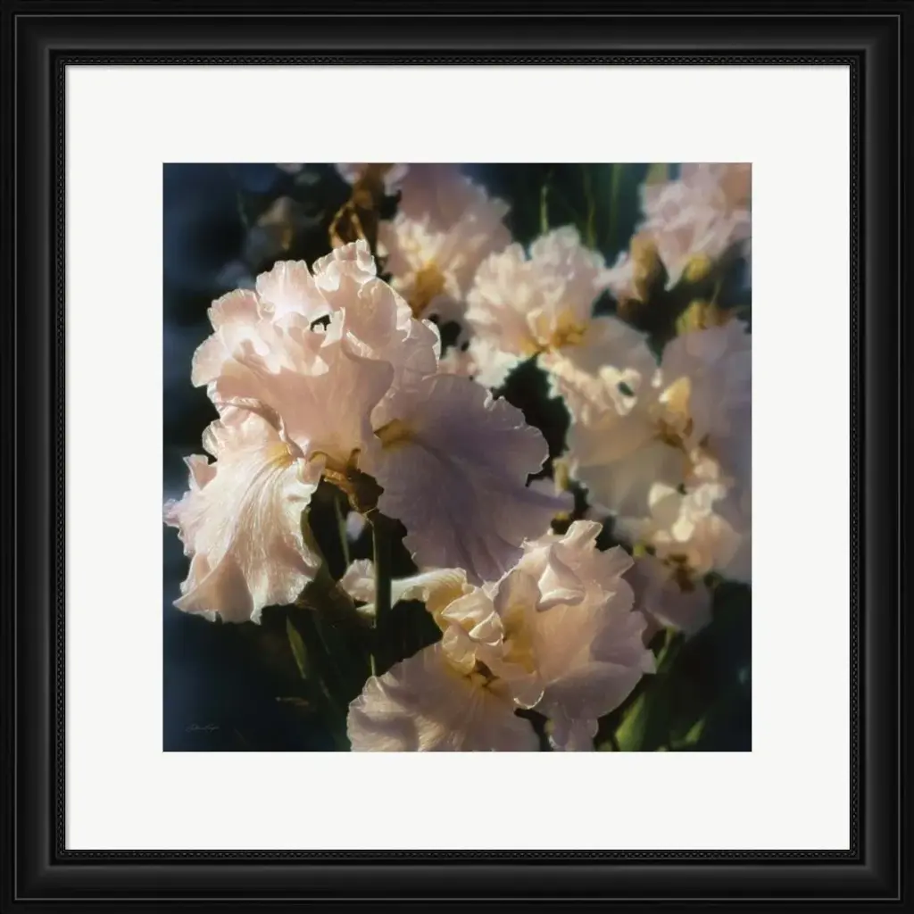 Calla Lilies - Emerging Dawn by Collin Bogle is a high quality piece of framed artwork. The finished size of this piece is 21.25" X 21.25". It has a Black Petite Decorative frame, is single matted and finished with high quality Acrylic Plexiglass.