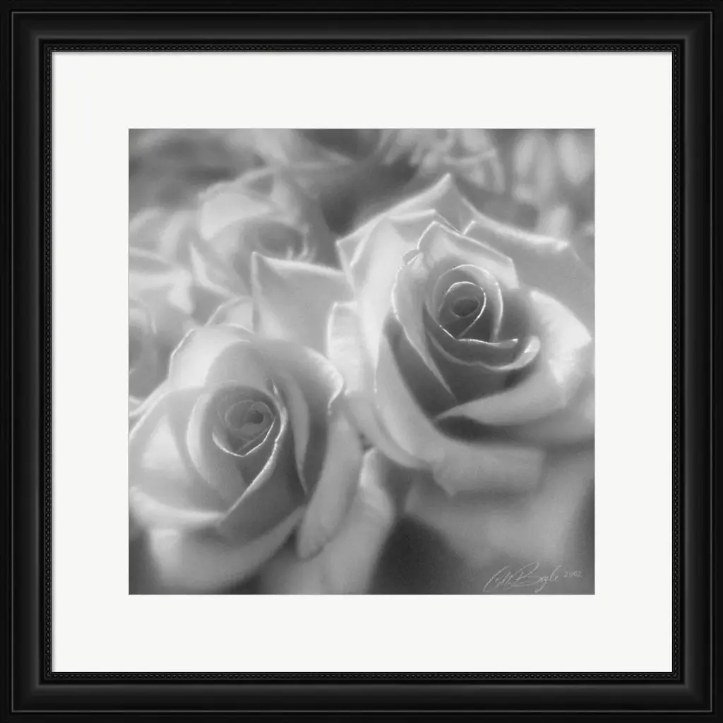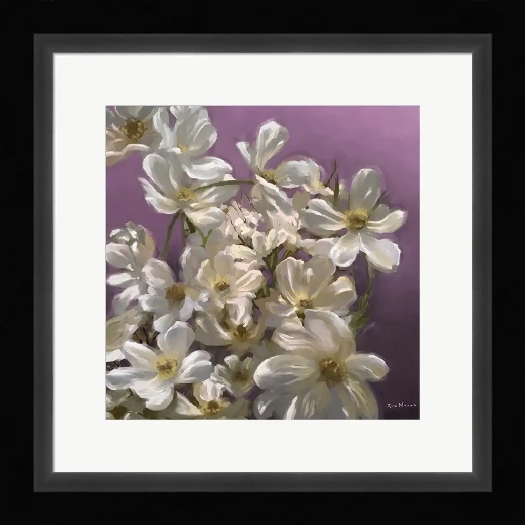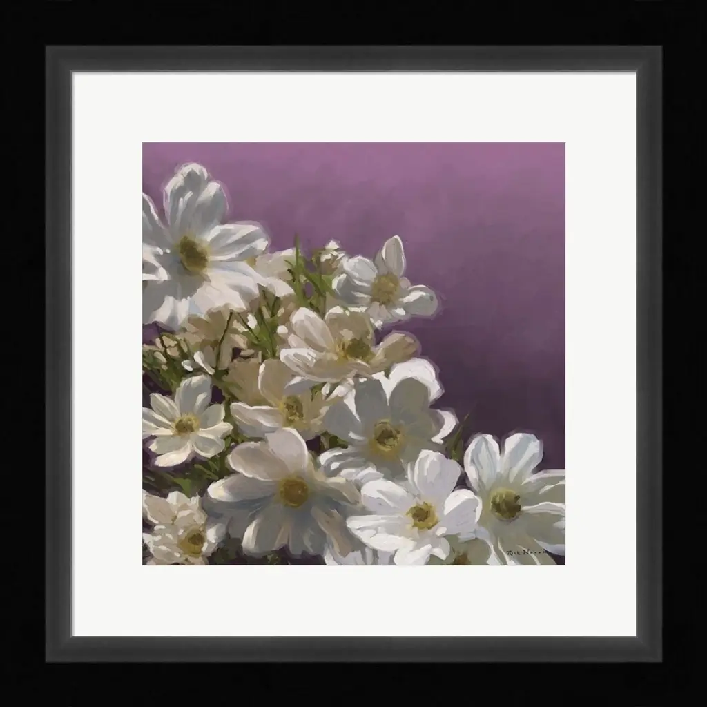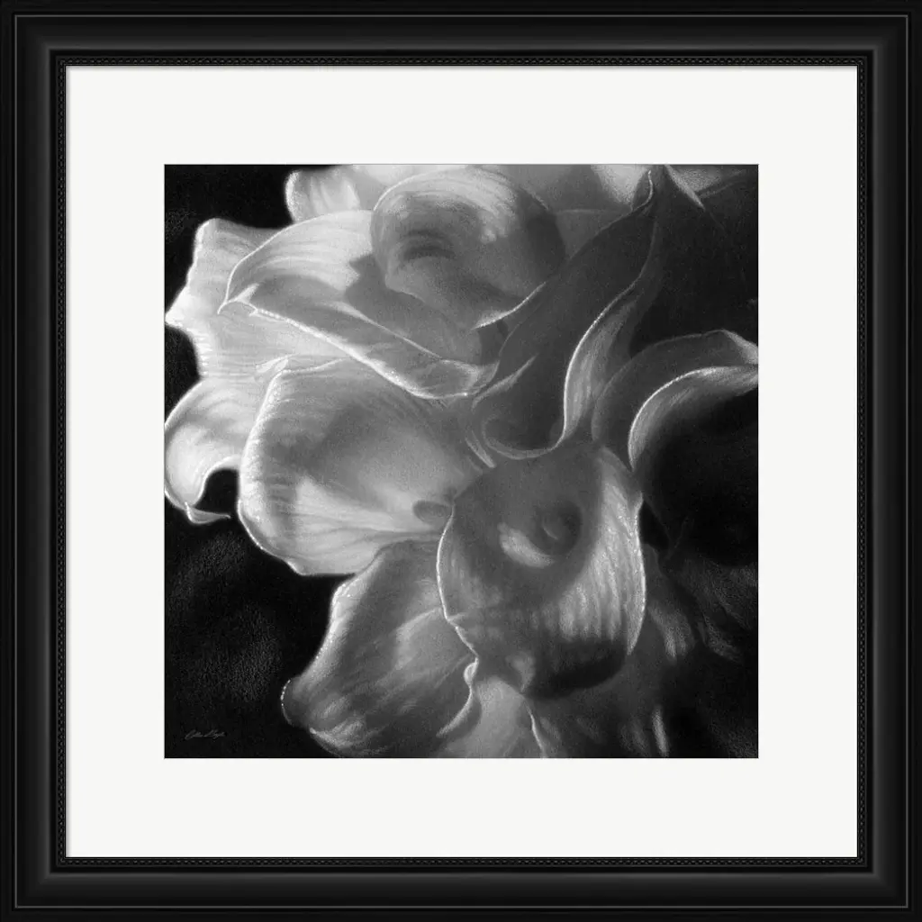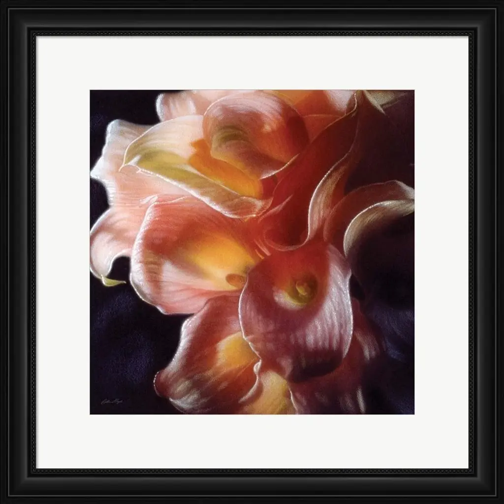Calla Lillie Bouquet by Collin Bogle is a high quality piece of framed artwork. The finished size of this piece is 21.25" X 21.25". It has a Black Petite Decorative frame, is single matted and finished with high quality Acrylic Plexiglass.