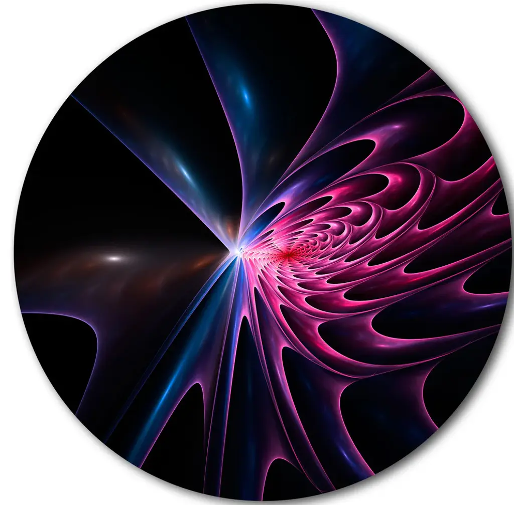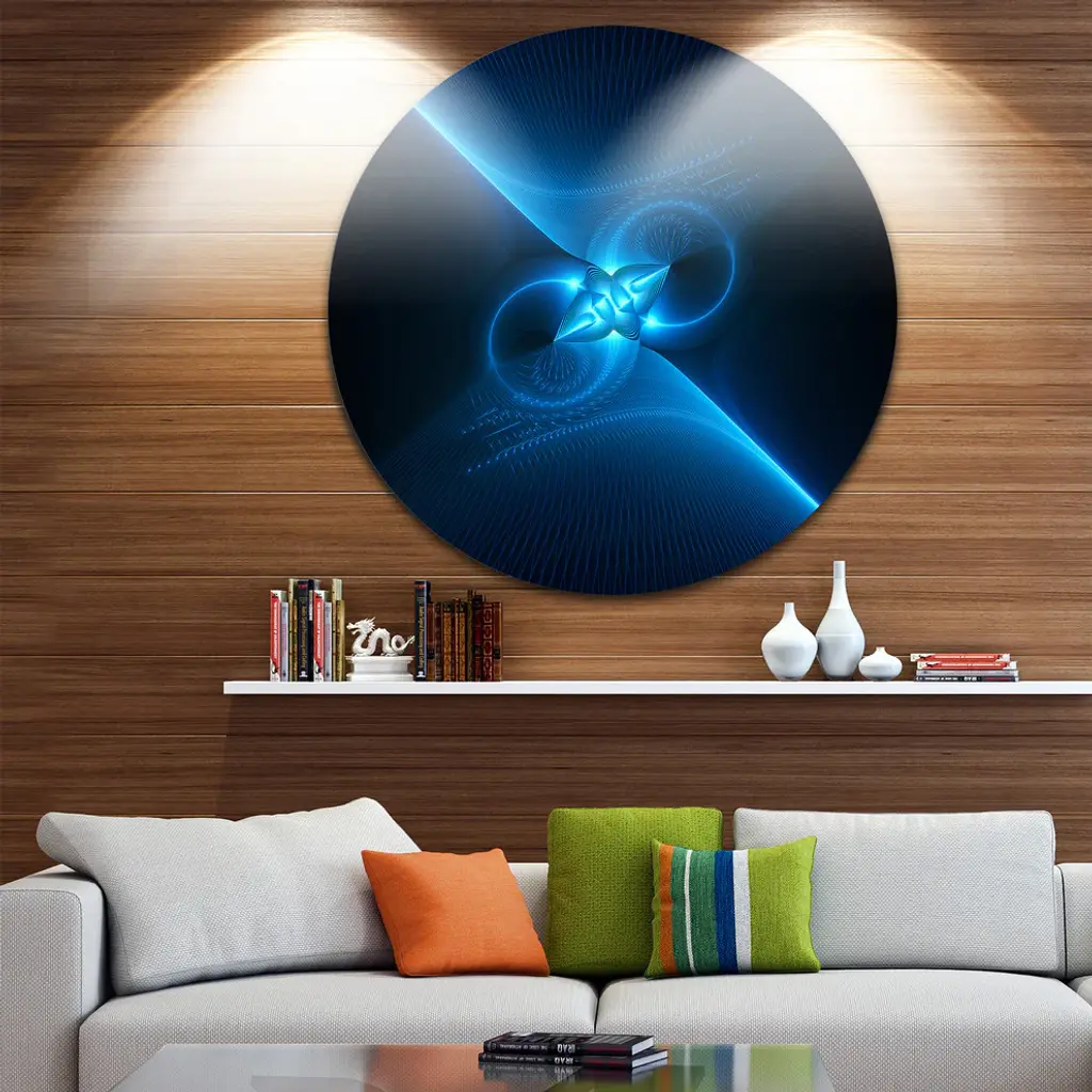 Bring Contemporary Abstraction to your home with this large Circle Metal wall art. This Collision of Two Large Suns in Blue Metal Artwork makes it the focal point of any room or office. - White Gloss Coating ensures colors are extra vibrant with light reflection.- Aluminum grade Sheet Metal with 1 inch mounting frame on the back giving the illusion that the artwork is floating on the wall..- Mounting Brackets are included along with instructions.- High Quality Digital images are created directly into a glossy aluminum panel producing a stunning and captivating print into the glossy finish of the metal.- Water, Fire and Scratch resistant HD Aluminum panels.- Looks better than any photo paper and guaranteed to last at least 20 years- Easy to clean with a microfiber cloth. Colors are far superior to regular Canvas Art. - Easy to Hang