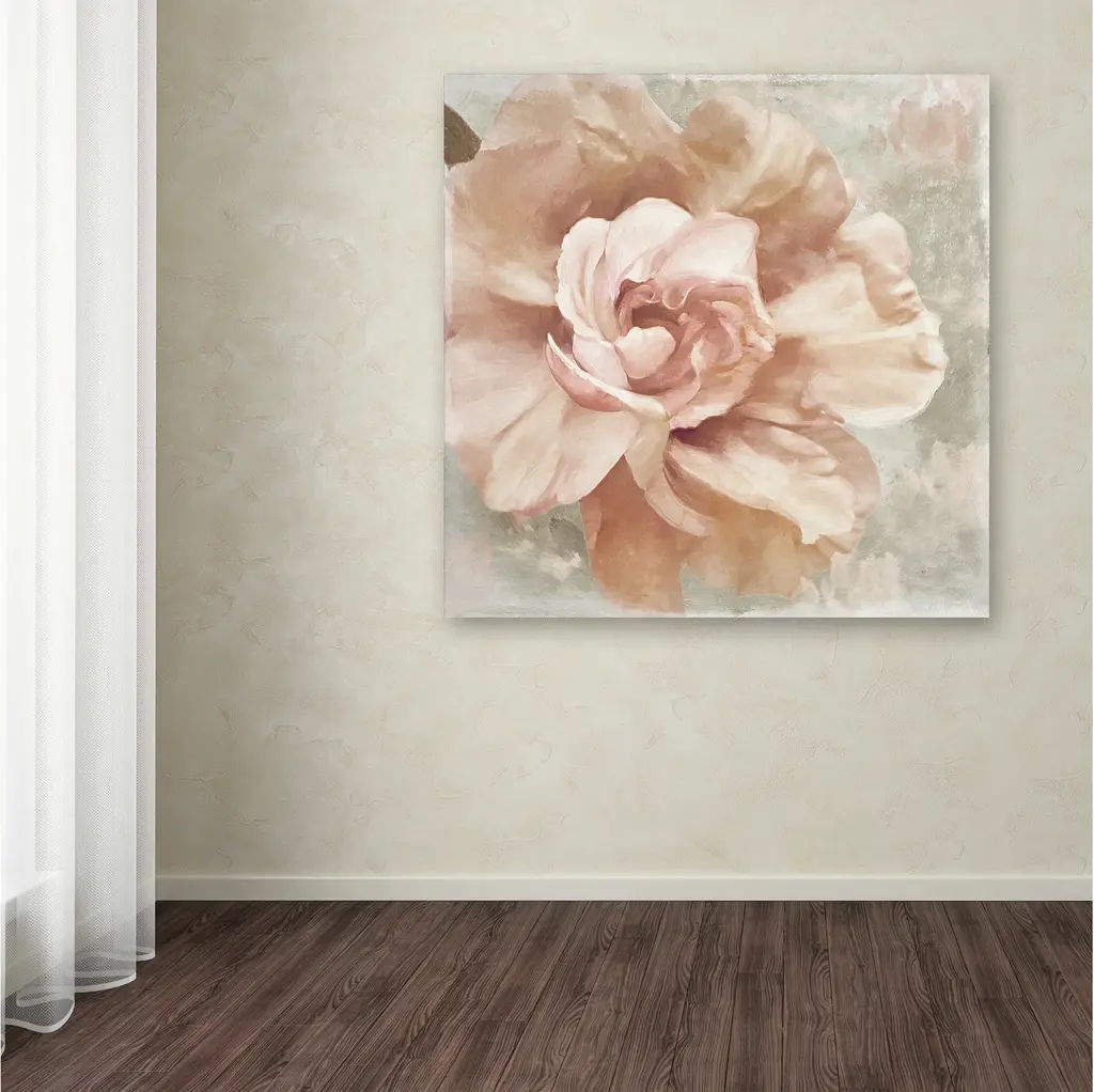 Artist: Color BakerySubject: FloralStyle: ContemporaryProduct Type: Gallery-Wrapped Canvas ArtMade in USAThis ready to hang, gallery-wrapped art piece features a close-up of a pale pink rose.Whether it's trend-right dinnerware collections, fabric, hostess-ware, and home decor accents, gift items, wall decor or paper goods, Color Bakery is unusually diversified when it comes to designing in widely varying styles and art genres. From repeat patterns to botanicals to coastal and kitchen (food) art, Color Bakery is synonymous with diversity.Giclee (jee-clay) is an advanced printmaking process for creating high quality fine art reproductions. The attainable excellence that Giclee printmaking affords makes the reproduction virtually indistinguishable from the original piece. The result is wide acceptance of Giclee by galleries, museums, and private collectors. Gallery wrap is a method of stretching an artist's canvas so that the canvas wraps around the sides and is secured a hidden, wooden frame. This method of stretching and preparing a canvas allows for a frameless presentation of the finished painting.