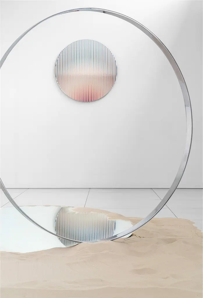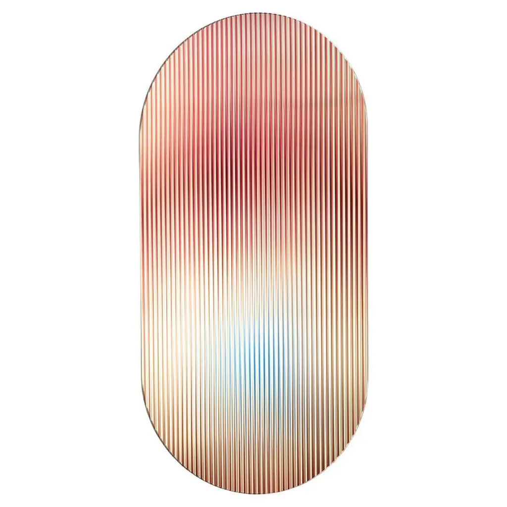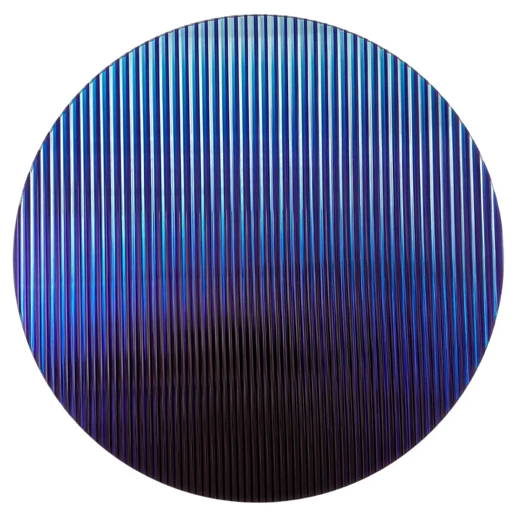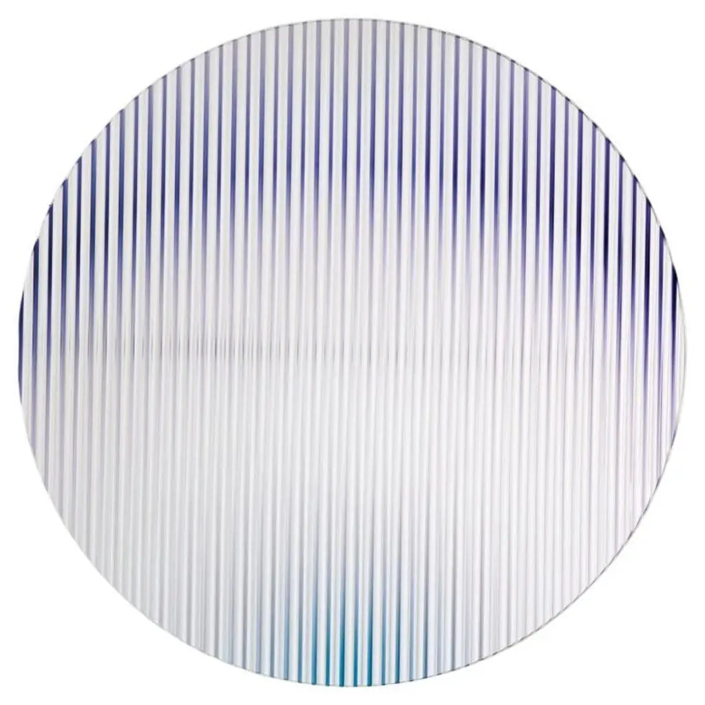 The reflective, coloured, rippled glass panel – designed to add a palette of colour to spaces – reflects light in spaces and adds movement and color whilst creating abstracted reflections. The piece disperses light through its rippled surface creating transitions of colour from various viewpoints. It works as an artistic object for spaces and has been designed with the intention of use for larger scale interior and architectural projects. It ships with a hanging system suitable for most wall types.Item is typically shipped in a custom wooden art crate which will be quoted separately with the shipping cost.