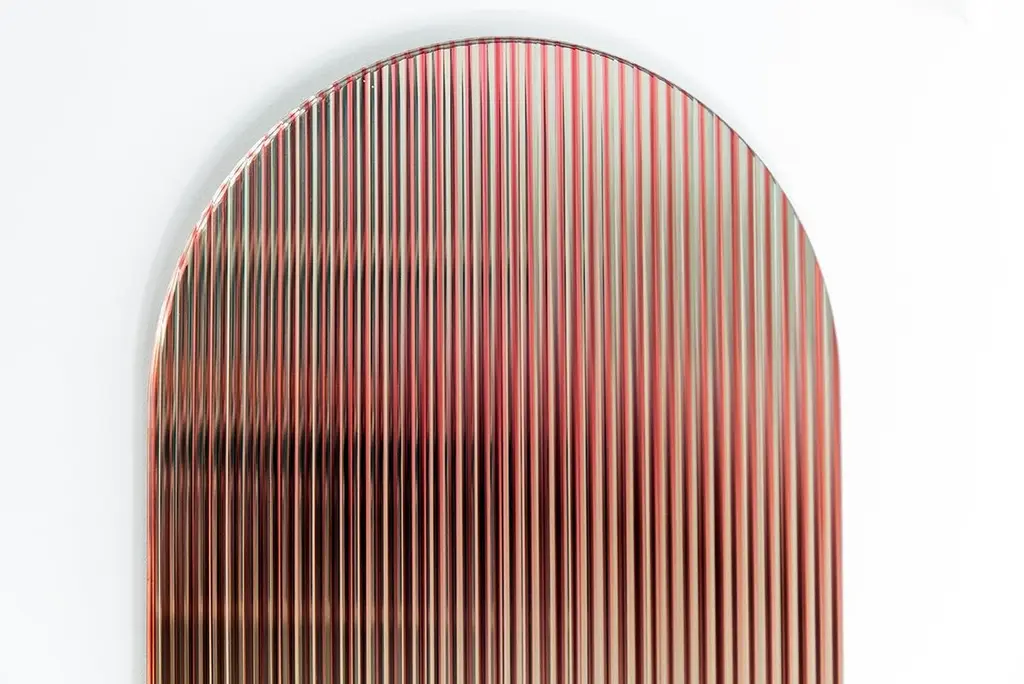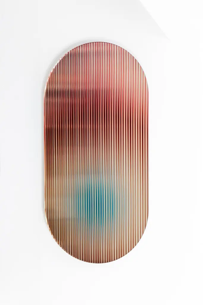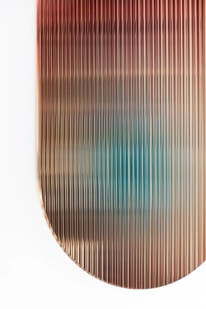 The reflective, coloured, rippled glass panel – designed to add a palette of colour to spaces – reflects light in spaces and adds movement and color whilst creating abstracted reflections. The piece disperses light through its rippled surface creating transitions of colour from various viewpoints. It works as an artistic object for spaces and has been designed with the intention of use for larger scale interior and architectural projects. It ships with a hanging system suitable for most wall types.Item is typically shipped in a custom wooden art crate which will be quoted separately with the shipping cost. About the Designer:Rive Roshan is the artistic practice of Ruben de la Rive Box and Golnar Roshan. The studio creates to connect with people intuitively through exploring visual wonder as a means to emotional well-being. “We feel our role as artists and designers is to offer people a new and inspiring narrative to build a progressive future.”Through experimental processes the studio designs immersive spatial experiences, materials and objects that enrich lives and create memories that we treasure.Rive Roshan’s work has been on show at Les Musée des Arts Decoratifs Paris, The Old Selfridges Hotel London, Powerhouse Museum Sydney, Shanghai Museum of Glass, Museum JAN with a recent acquisition by National Gallery Victoria.