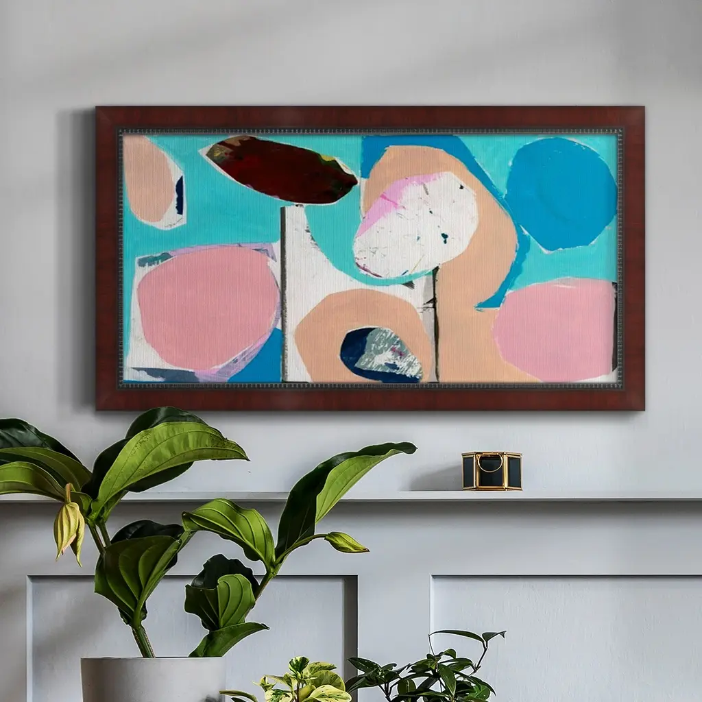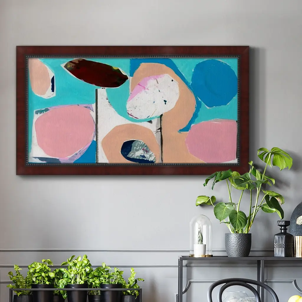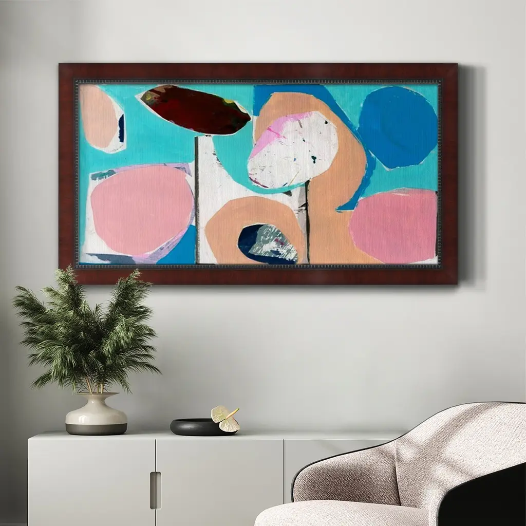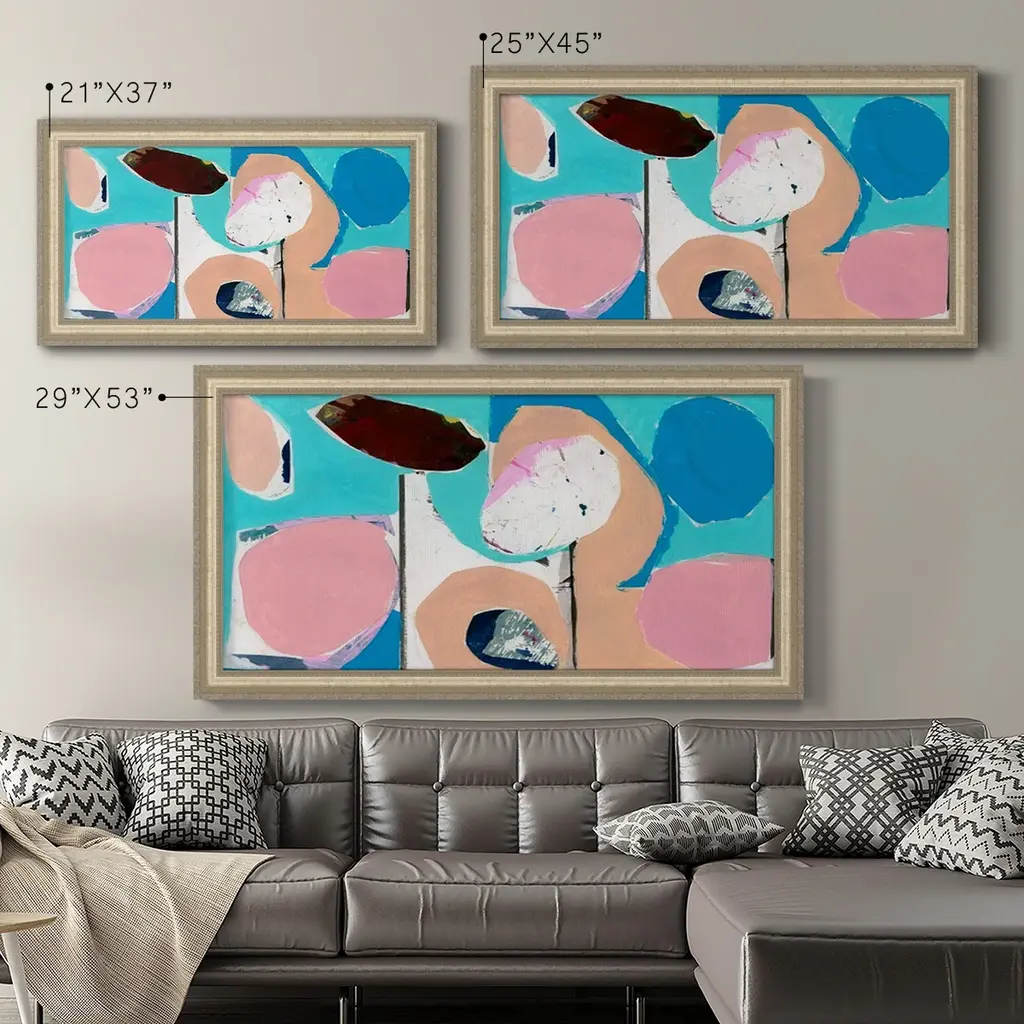 Color Trend II Premium Framed Canvas- Ready to Hang A Premium Framed Canvas created to last. Framed in distressed wood and available in an array of sizes and colors Featuring a beveled a solid wood stretcher bar, each piece comes ready to hand 3 SIZES AVAILABLE 21''X37'' - Overall Size 25''X45'' - Overall Size 29''x53'' - Overall Size Each piece is made to order. Each piece comes with hanging hardware. Made in the USA Ready to Hang Giclee Paper Print Acrylic Glass Beveled Matt Board