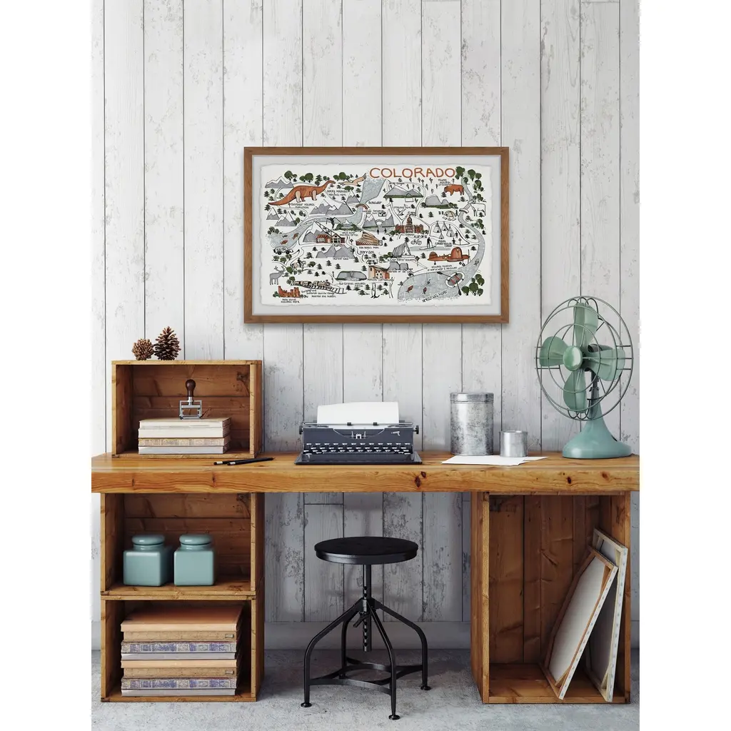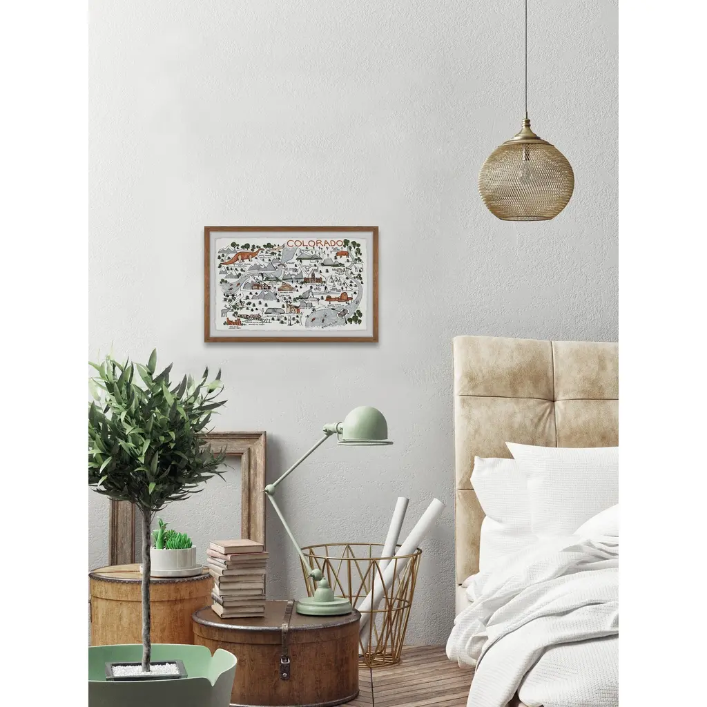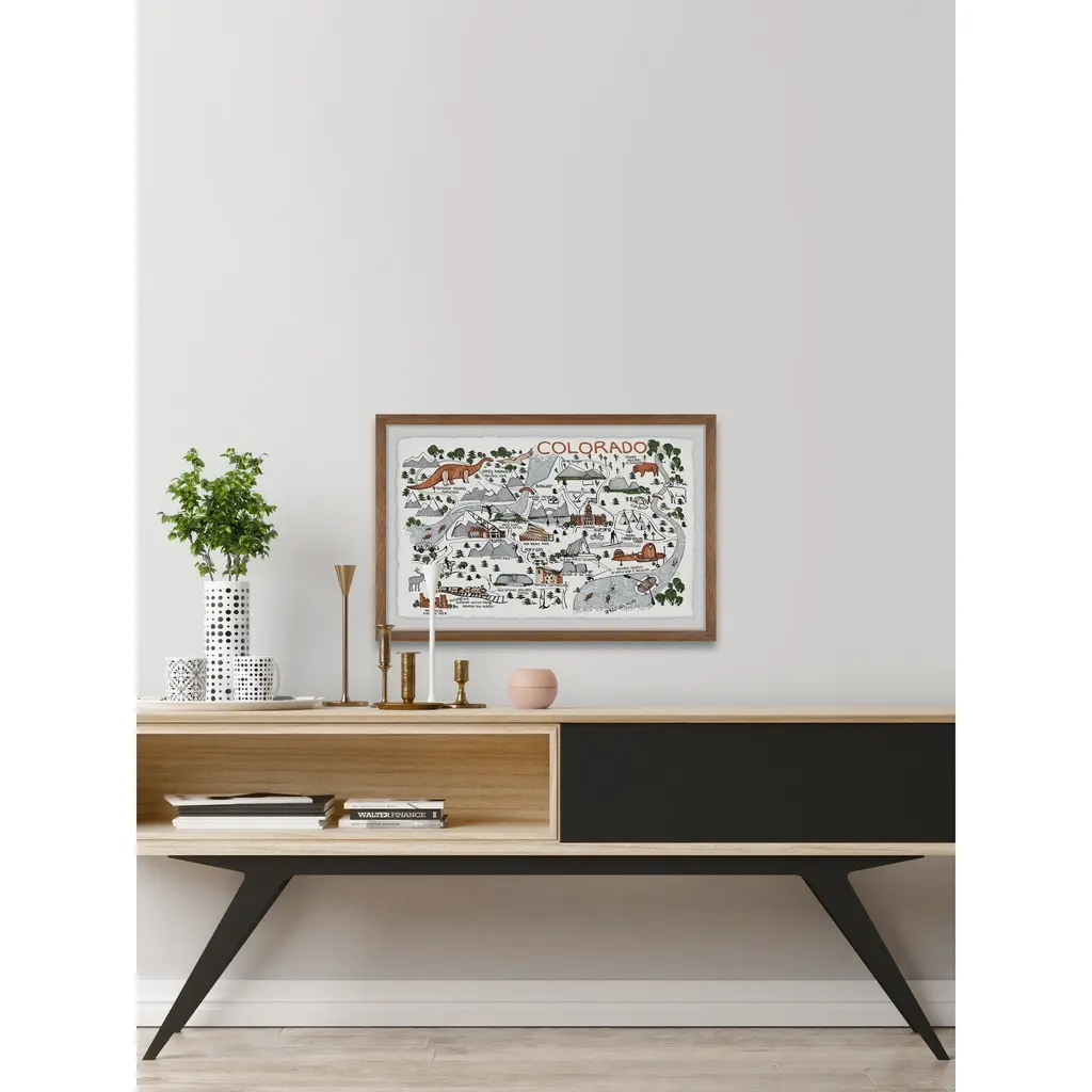 Never lose your way with this educational and eye-catching textual map of Colorado. Featuring all of the state's most visited landmarks and what they stand for. Proudly printed in the USA, this piece is printed on high quality archive paper and professionally hand-framed. With wall-mounting hooks included, this artful accent is ready to hang up as soon as it reaches your front door. • Top quality Giclee print on high resolution Archive Paper • Hand cut deckled edges • High quality durable non-warping frame • Finished under shatter resistant plexiglass • Arrives ready to hang • Includes a certificate of authenticity • Printed in the USA