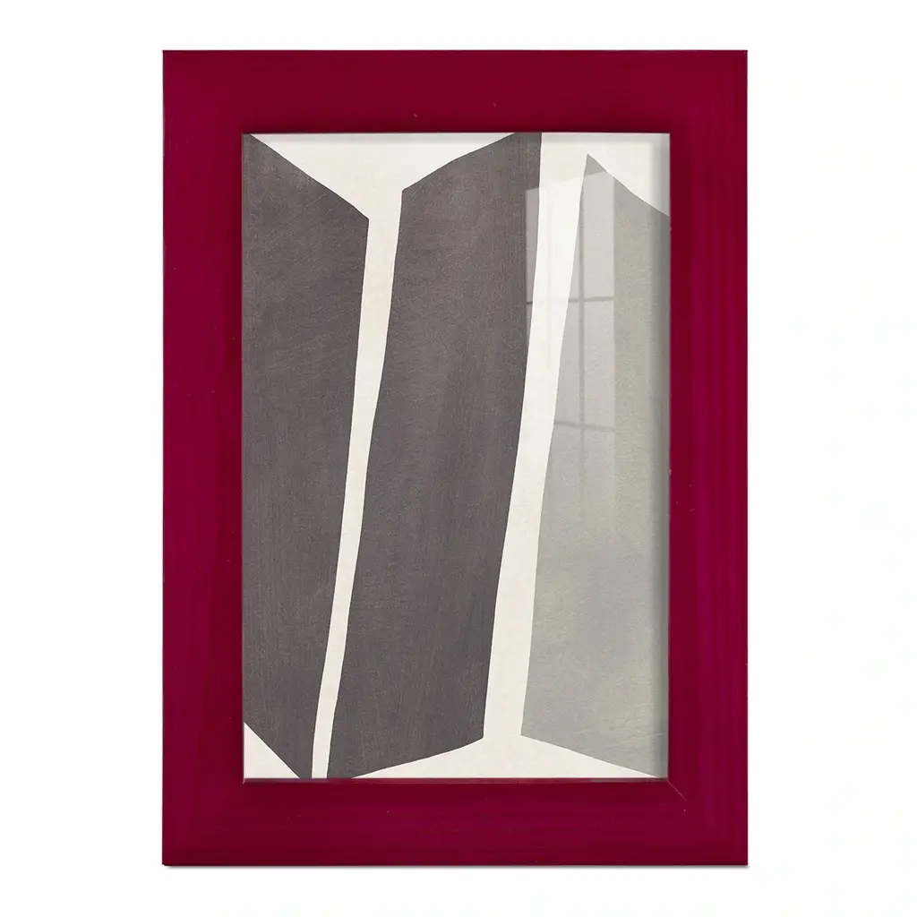 Colorblock Artifact I -EZ SWITCH Framed Print w/glass-Cherry Red A delightful, framed print. Featuring a solid wood frame with real wood glass. This premium print is giclee quality. In addition, every frame features a removable back and table top stand. This allows you to change your art in the future or to just stand the art on a table for a new look. We are sure you'll enjoy our new series of EZ SWITCH Framed Art. Solid Wood Frame Real Glass Removable / Replaceable Art Built in Tabletop Stand Sizes range from 4x6 up to 12x15 - buy just one or pair them up as sets as you see fit.