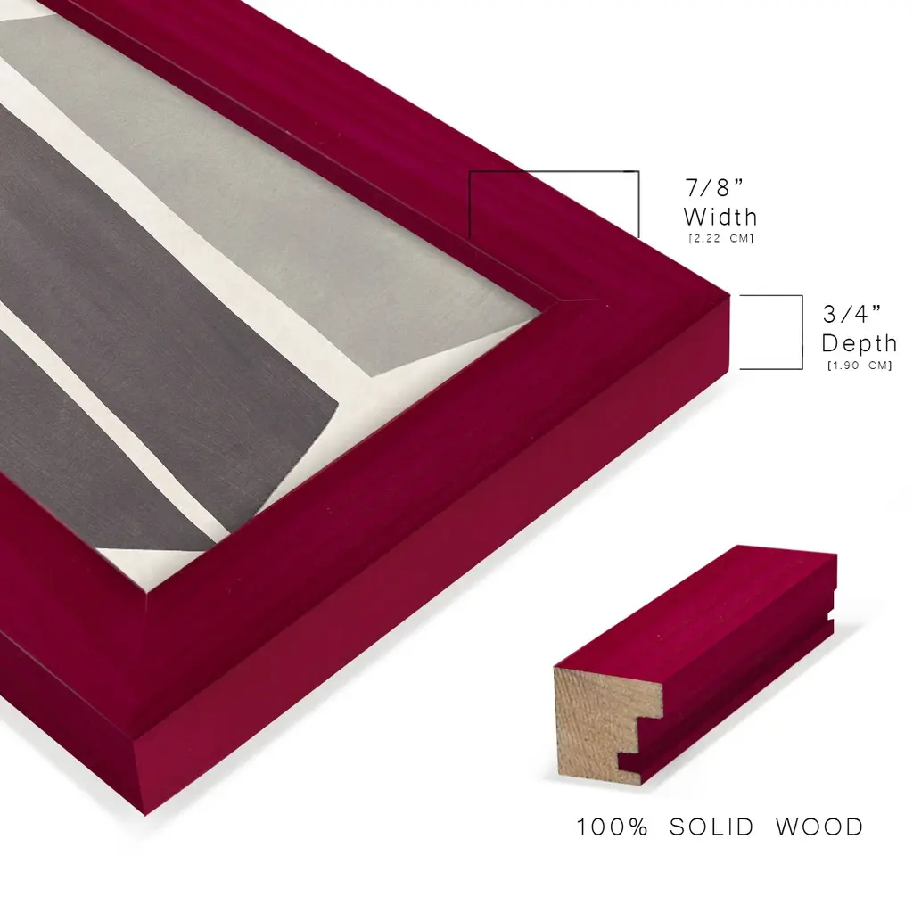 Colorblock Artifact I -EZ SWITCH Framed Print w/glass-Cherry Red A delightful, framed print. Featuring a solid wood frame with real wood glass. This premium print is giclee quality. In addition, every frame features a removable back and table top stand. This allows you to change your art in the future or to just stand the art on a table for a new look. We are sure you'll enjoy our new series of EZ SWITCH Framed Art. Solid Wood Frame Real Glass Removable / Replaceable Art Built in Tabletop Stand Sizes range from 4x6 up to 12x15 - buy just one or pair them up as sets as you see fit.