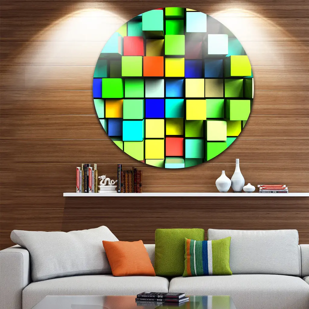 Colored 3D Cubes Wall Design, Abstract Art Round Wall Art, 11"