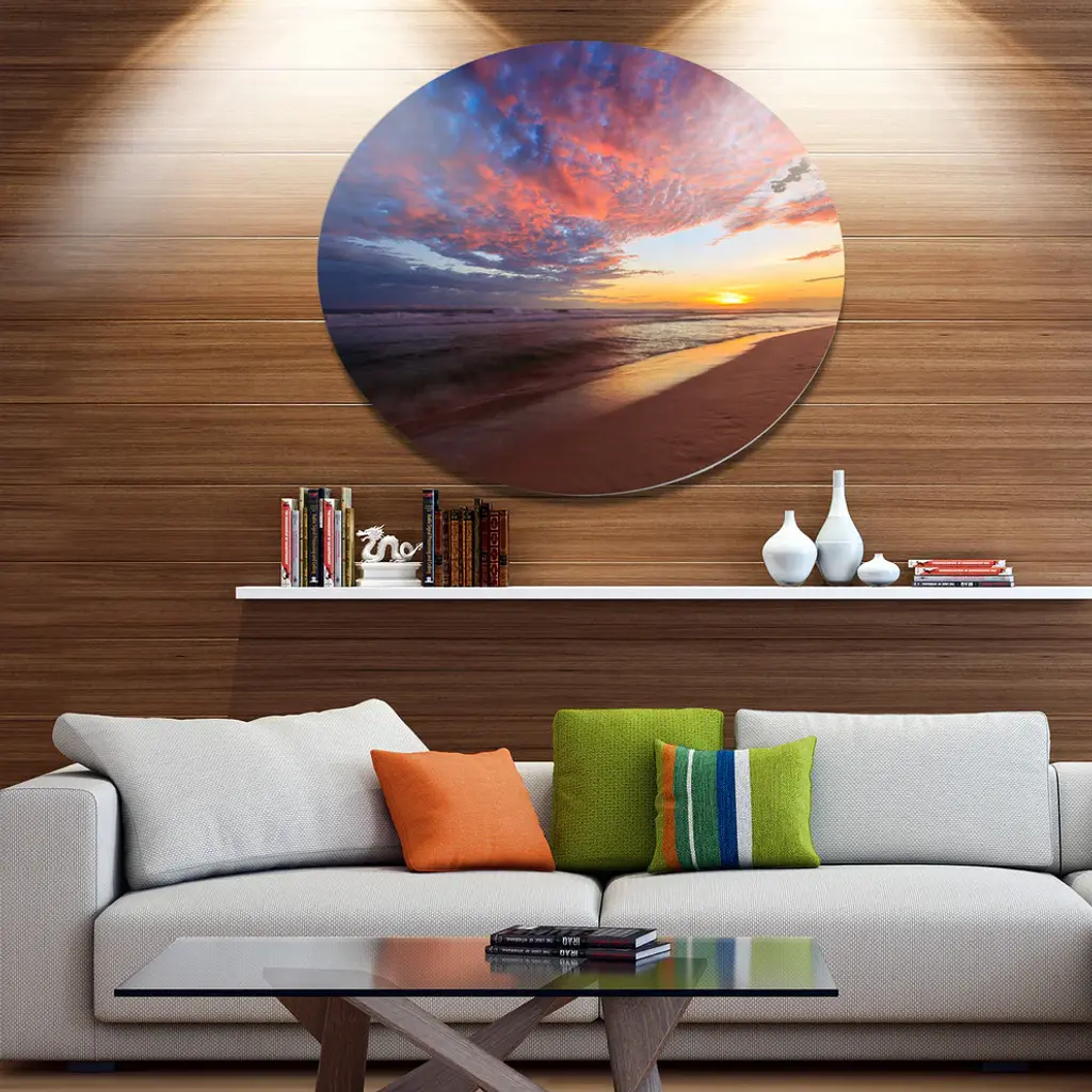 Colored Clouds In Beach At Sunset, Seashore Disc Metal Wall Art, 23"