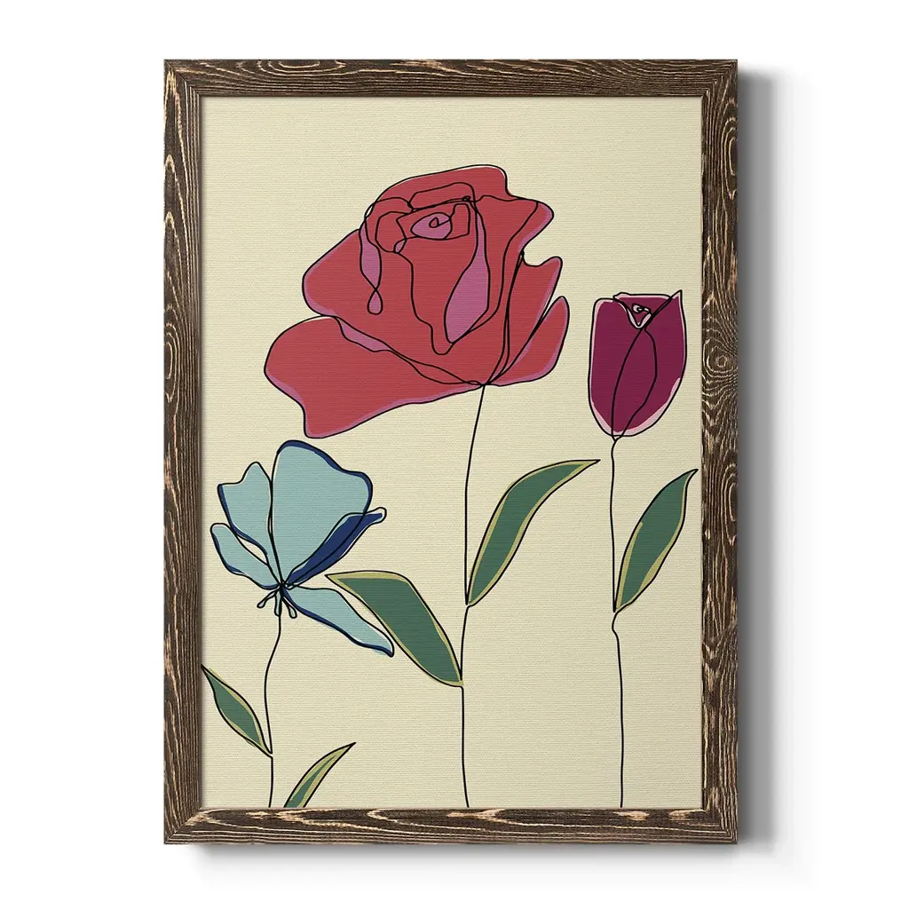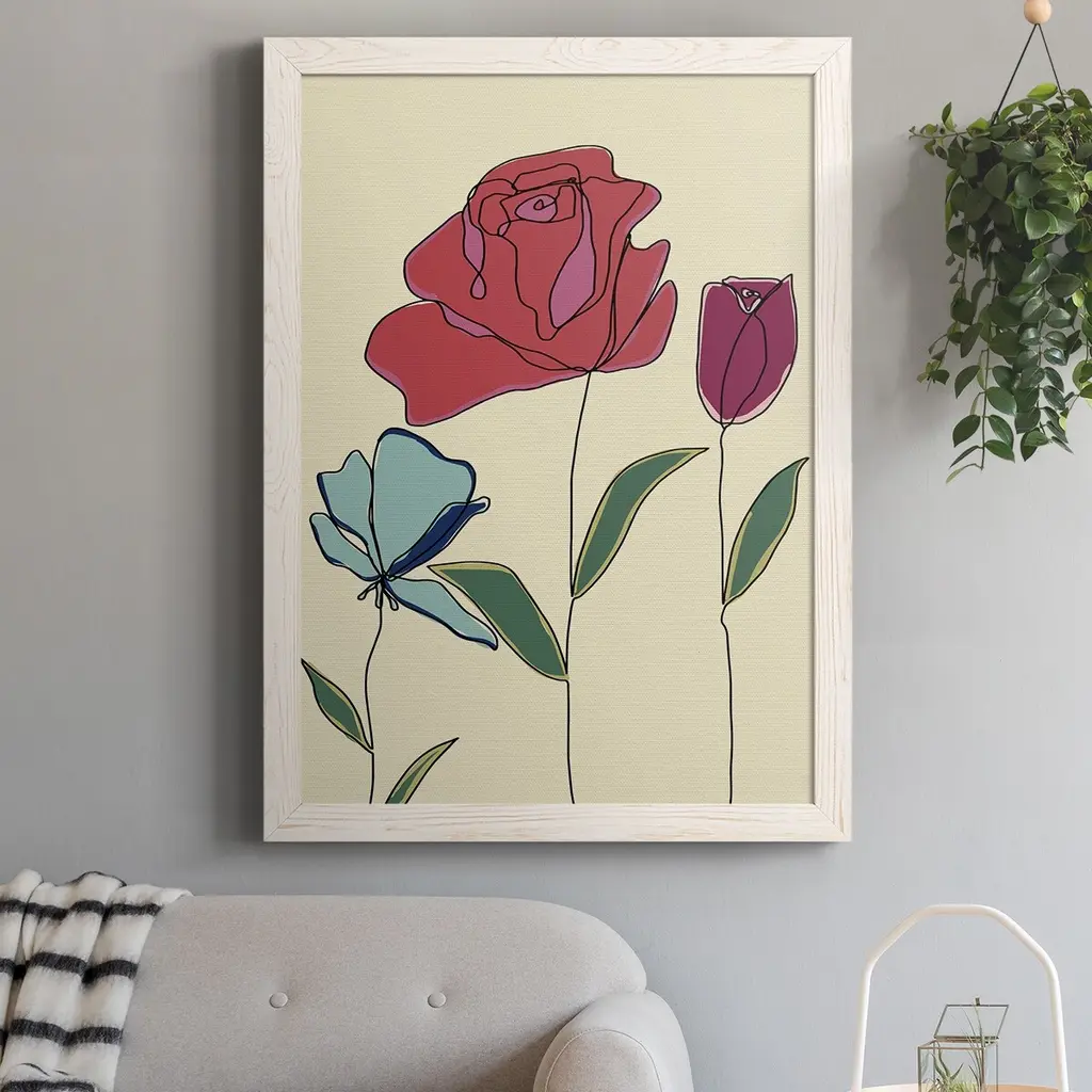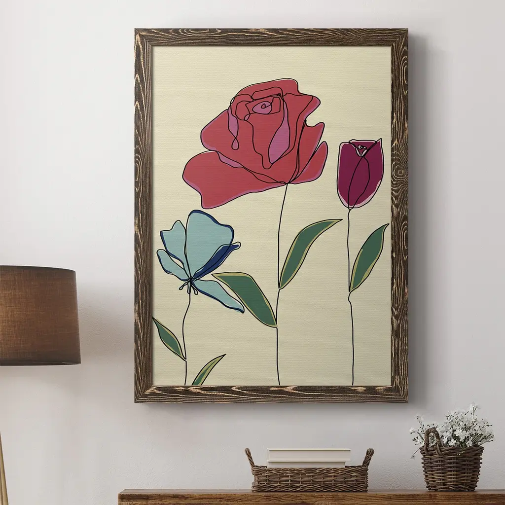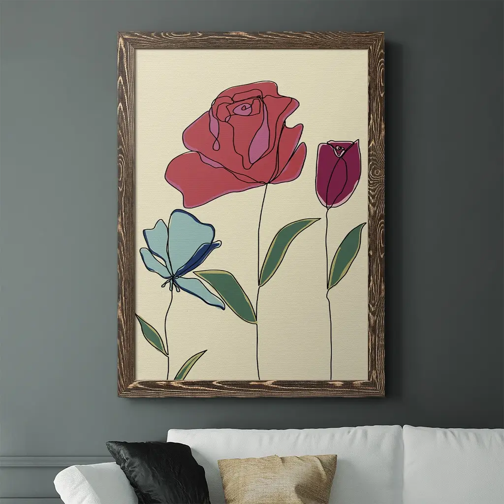 Colored Floral I-Premium Framed Canvas - Ready To Hang - 27.5x37.5 - Grey