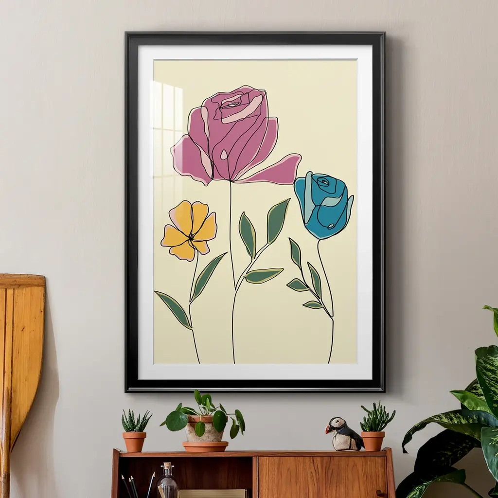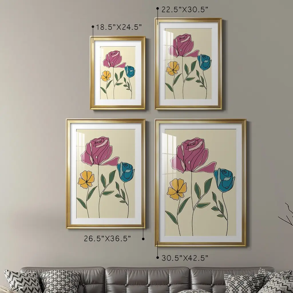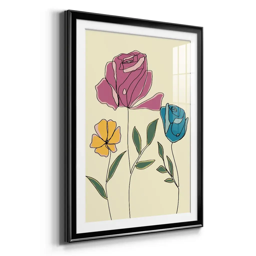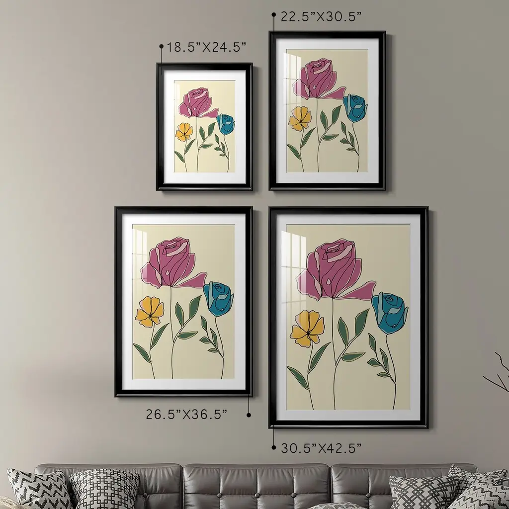 Colored Floral II Premium Framed Print - Ready to Hang A Premium Framed Print created to last. Framed in distressed wood and available in an array of sizes and colors Featuring a beveled a solid wood stretcher bar, each piece comes ready to hand 4 SIZES AVAILABLE 30.5''X42.5'' - Overall Size 26.5'X36.5'' - Overall Size 22.5''x30.5'' - Overall Size 18.5''x24.5'' - Overall Size Each piece is made to order. Each piece comes with hanging hardware. Made in the USA Ready to Hang Giclee Paper Print Acrylic Glass Beveled Matt Board