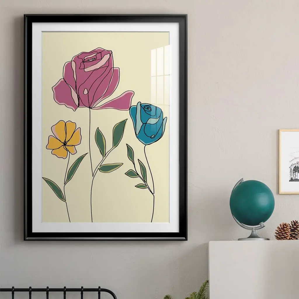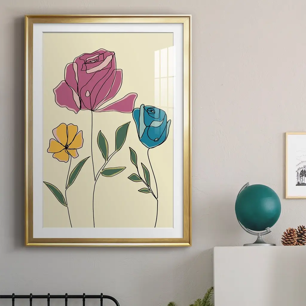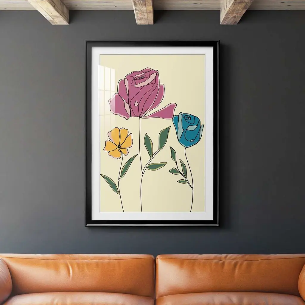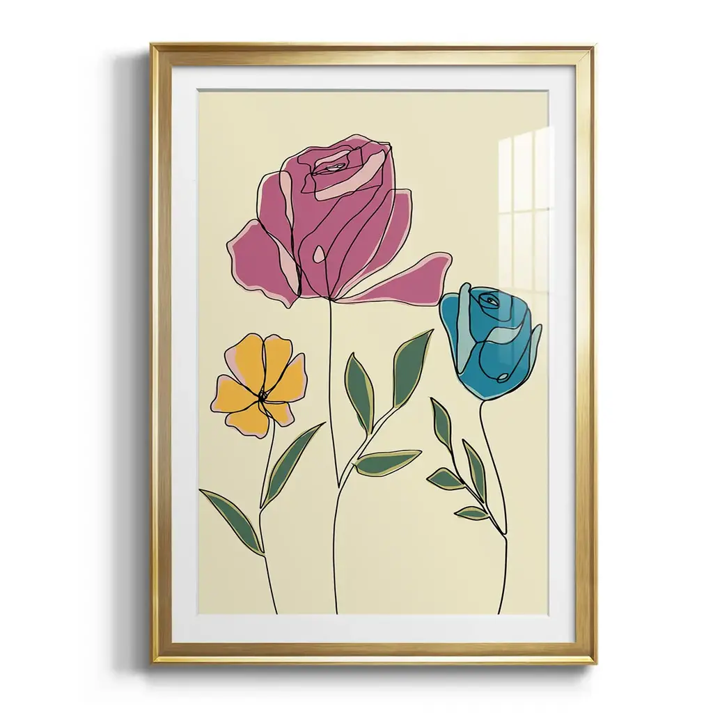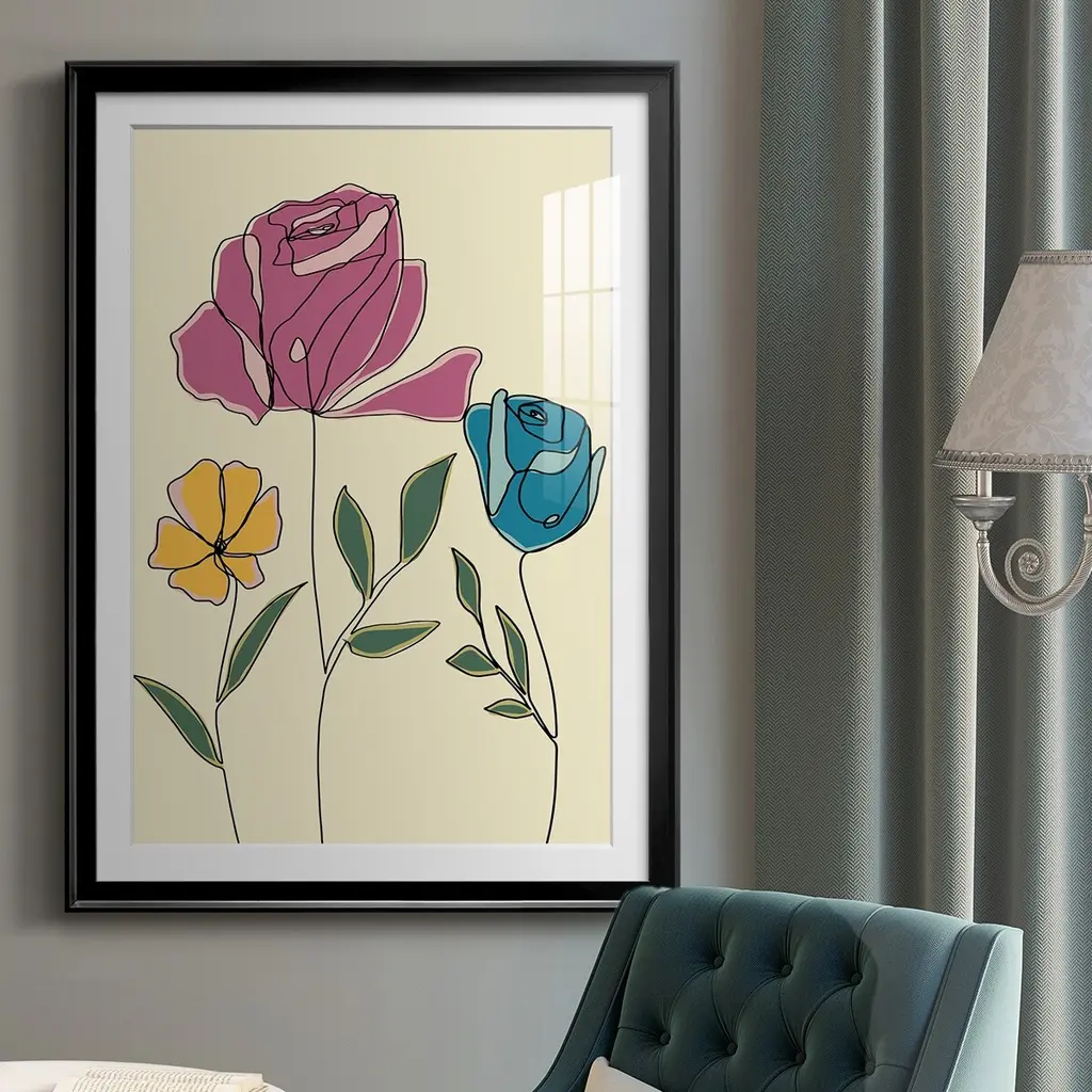 Colored Floral II Premium Framed Print - Ready to Hang A Premium Framed Print created to last. Framed in distressed wood and available in an array of sizes and colors Featuring a beveled a solid wood stretcher bar, each piece comes ready to hand 4 SIZES AVAILABLE 30.5''X42.5'' - Overall Size 26.5'X36.5'' - Overall Size 22.5''x30.5'' - Overall Size 18.5''x24.5'' - Overall Size Each piece is made to order. Each piece comes with hanging hardware. Made in the USA Ready to Hang Giclee Paper Print Acrylic Glass Beveled Matt Board