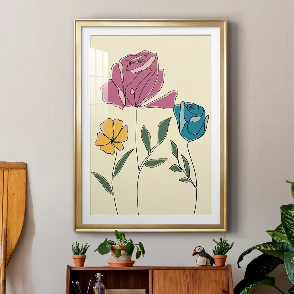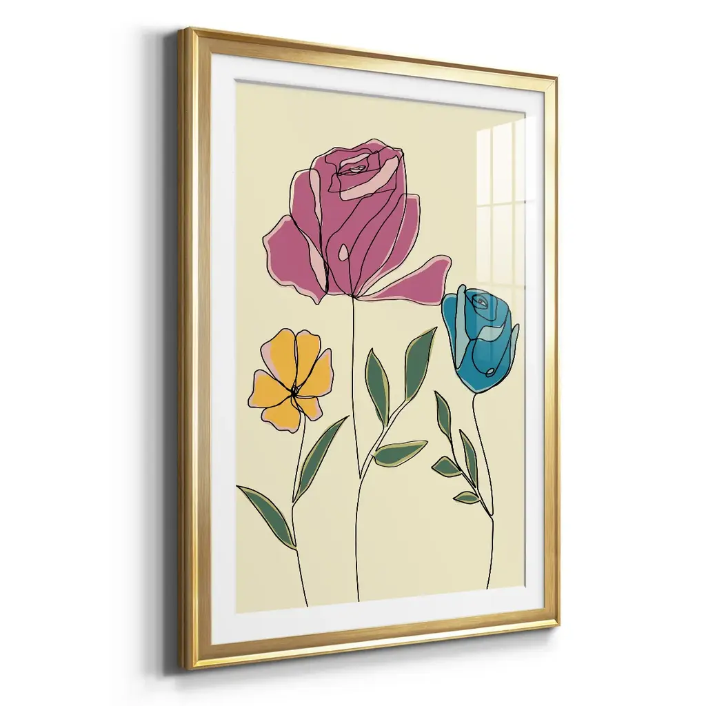 Colored Floral II Premium Framed Print - Ready to Hang A Premium Framed Print created to last. Framed in distressed wood and available in an array of sizes and colors Featuring a beveled a solid wood stretcher bar, each piece comes ready to hand 4 SIZES AVAILABLE 30.5''X42.5'' - Overall Size 26.5'X36.5'' - Overall Size 22.5''x30.5'' - Overall Size 18.5''x24.5'' - Overall Size Each piece is made to order. Each piece comes with hanging hardware. Made in the USA Ready to Hang Giclee Paper Print Acrylic Glass Beveled Matt Board