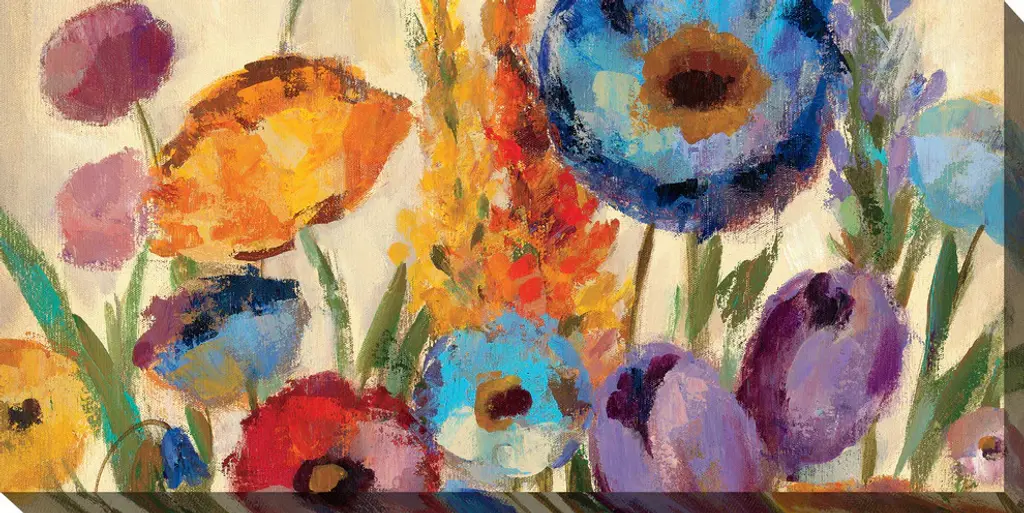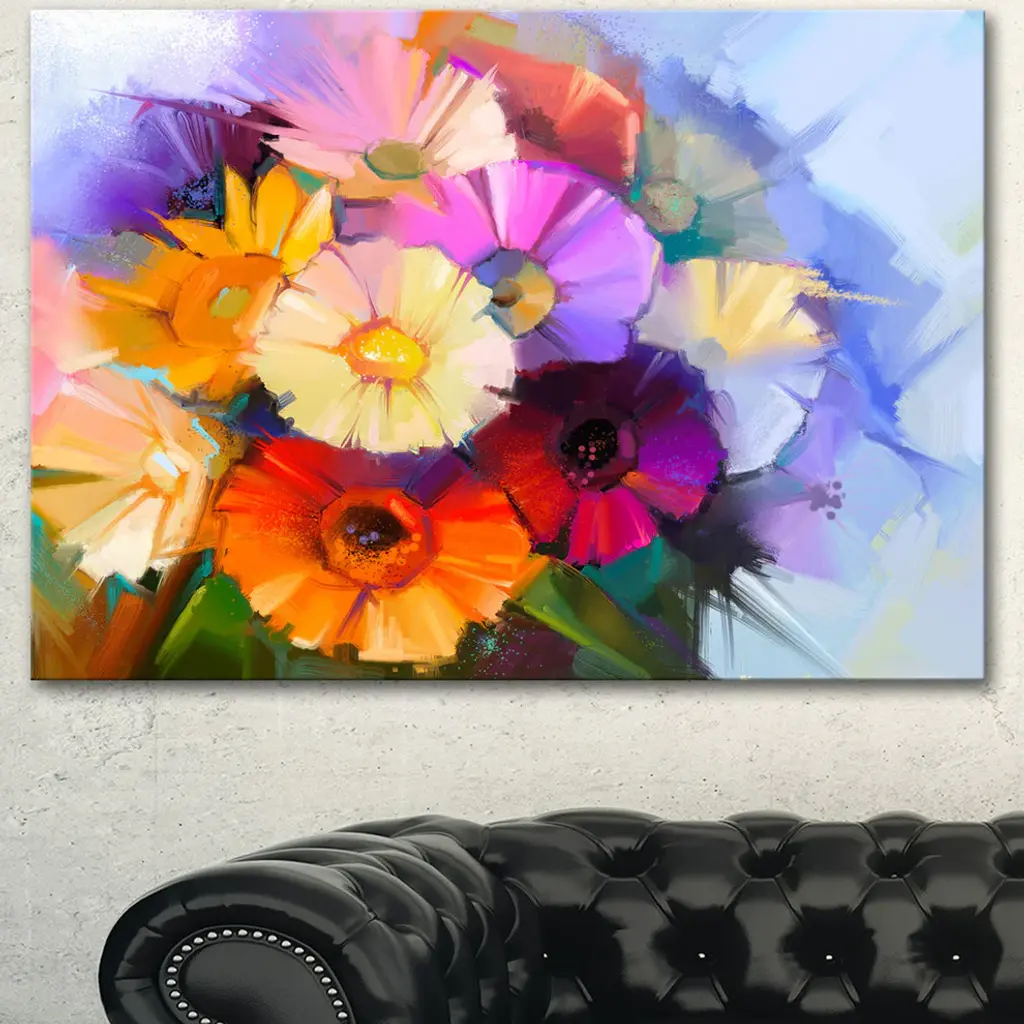 Colored Gerbera Flowers Bouquet, Large Floral Canvas Art Print, 60"x28"