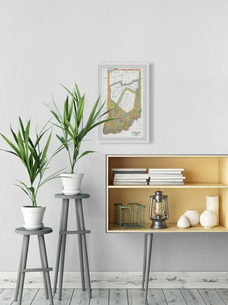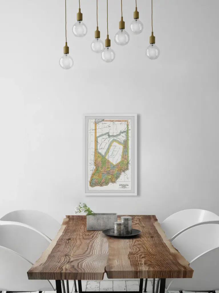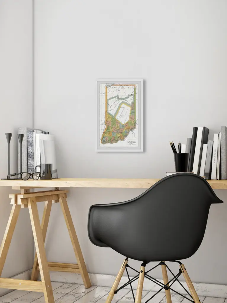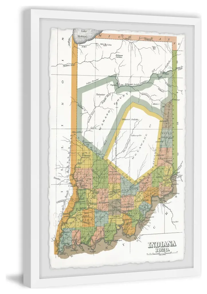 This colorful map features the entire state of Indiana and what each city has to offer. Proudly printed in the USA, this piece is printed on high quality archive paper and professionally hand-framed. With wall-mounting hooks included, this artful accent is ready to hang up as soon as it reaches your front door.- Top quality Gicle print on high resolution Archive Paper- Hand cut deckled edges- High quality durable non-warping frame- Finished under shatter resistant plexiglass- Arrives ready to hang- Includes a certificate of authenticity- Printed in the USA