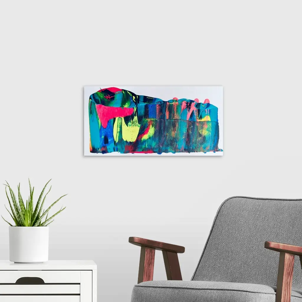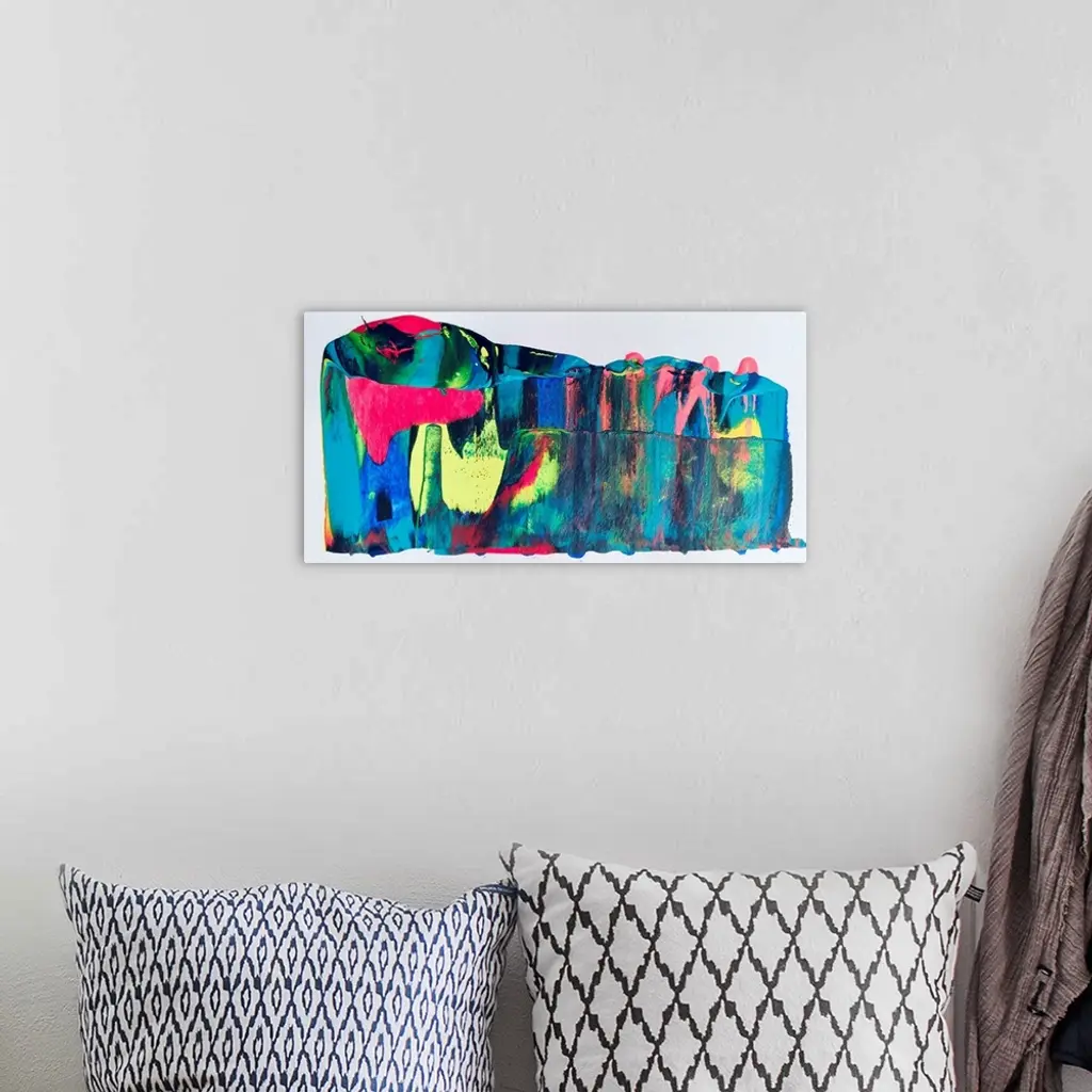 Abstract expressionist painting with geometric color and lines invading the space in contrast with different elements: light, shadows, shape, texture and movement.