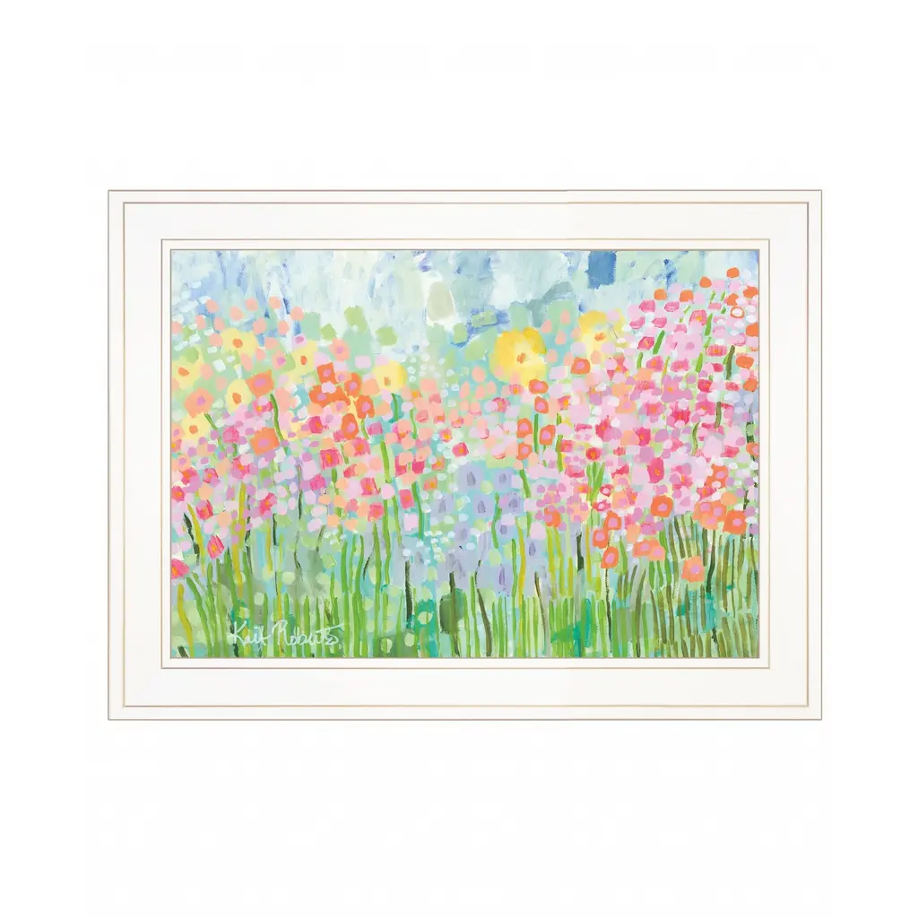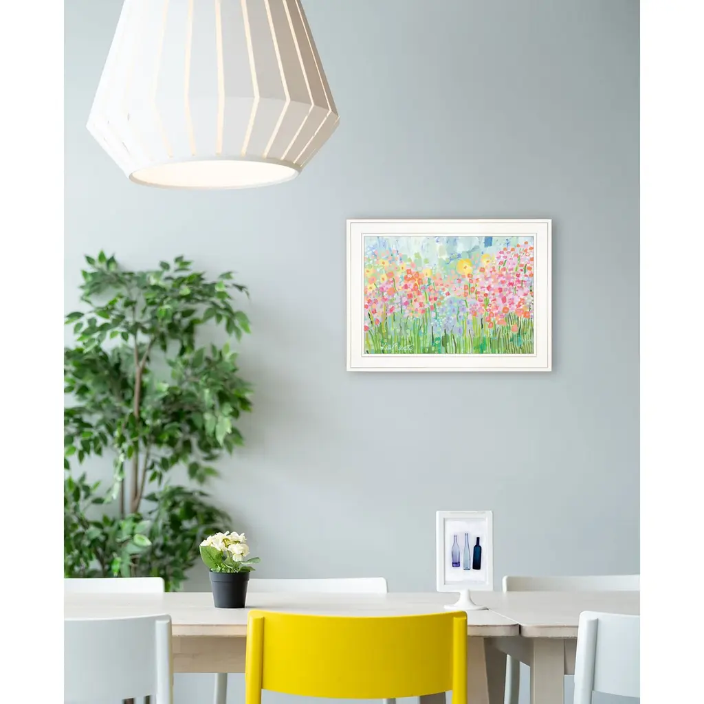 This Colorful Abstract Field of Flowers white framed print wall art will add a beautiful decorative accent to your decor. This print is a visual artistic expression that allows you to decorate your space in style. Reproduced for you on wood, this hanging decorative accent will be a trendy and fashionable way to dress your walls in a rustic and modern farmhouse vibe. Hang on your wall to add some up to date fashion and decoration. Instantly liven up your space with this art that brings color and dimension to your walls. 15" H x 19" W x 1" D