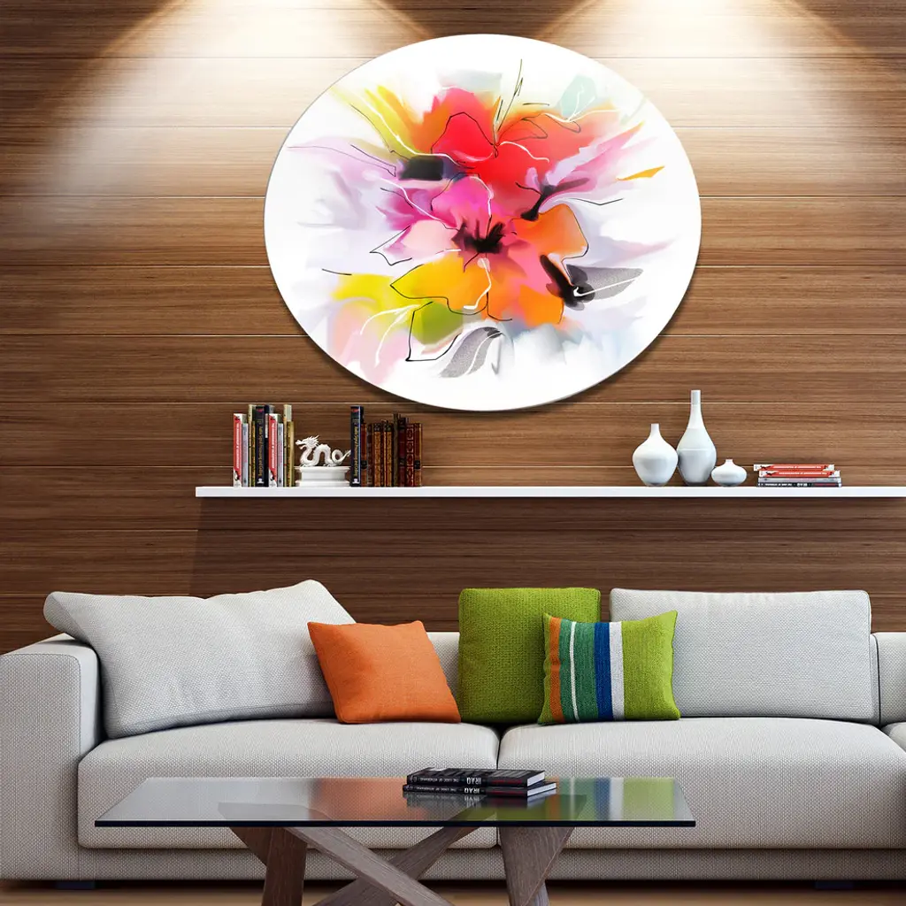 Colorful Abstract Flowers On White, Floral Disc Metal Wall Art, 23"