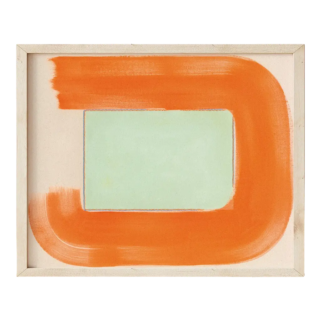 'Celery/Orange' Fine Art Print by Emily Keating Snyder Print itself is 24 x 30 in. and framed in a light wood frame with UV-shield plexiglass (approx. 25" x 31" overall) Printed on archival matte paper (no physical embroidery is present in the print) Note: Colors may appear slightly different in person due to screen variations. About the Artist: Emily Keating Snyder incorporates embroidery into her colorful minimalist abstract paintings. Her archival fine art prints visually highlight the dimensional quality of the originals. Emily's work has been featured by Anthropologie, Real Simple, Emily Henderson, Clever and Parachute Home.