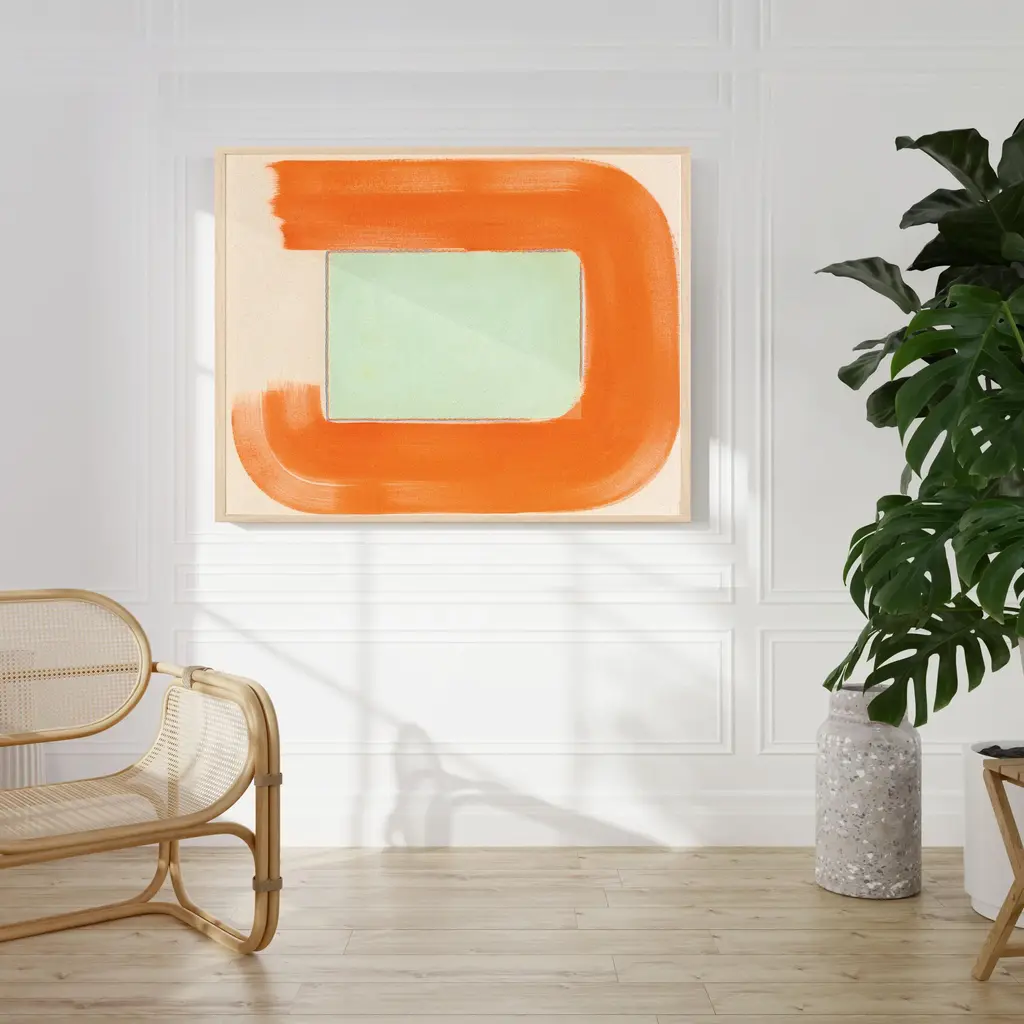 Colorful Abstract Modern Art Print, 'Celery/orange', 24 X 30 Print In Wood Frame