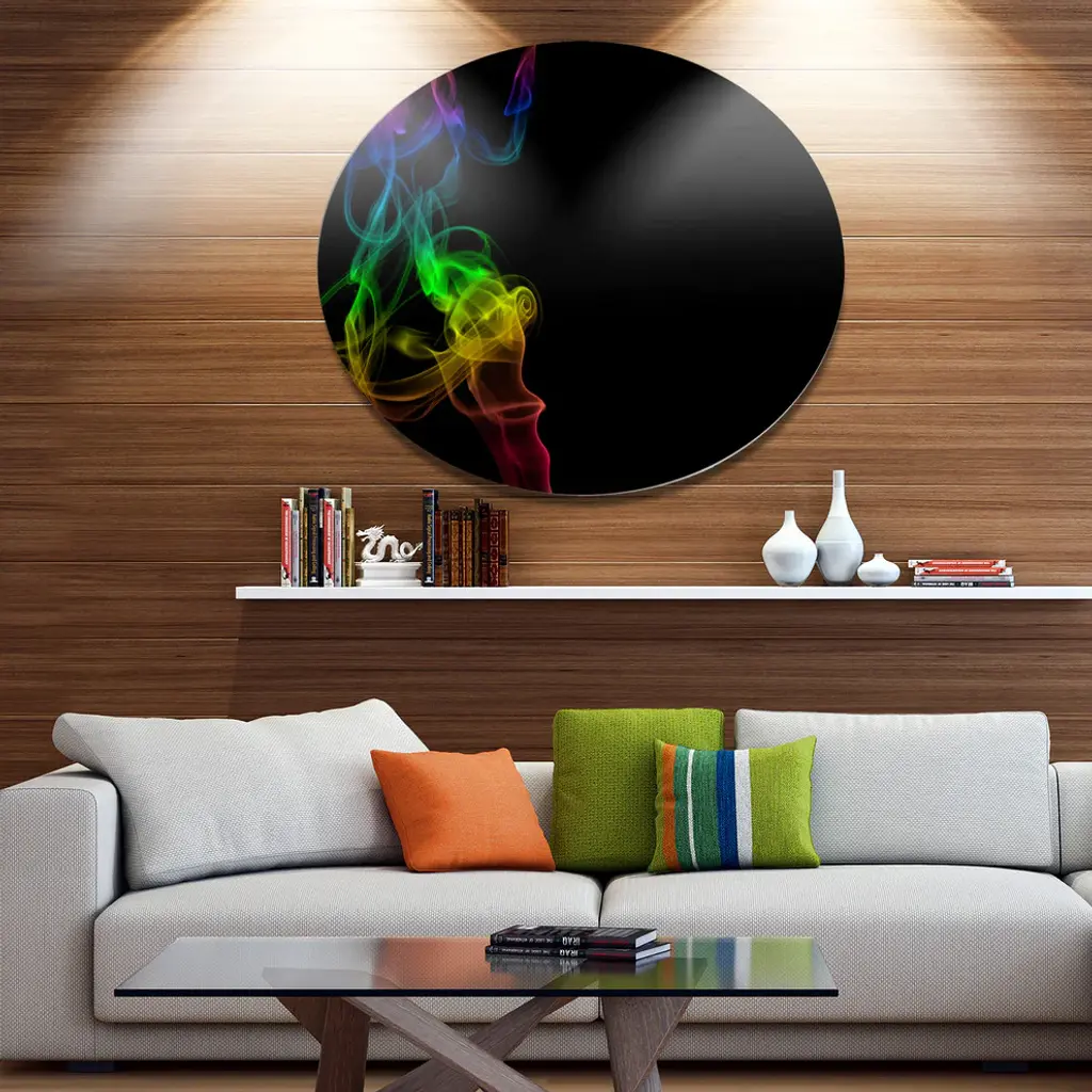 Colorful Abstract Smoke Waves, Abstract Large Disc Metal Wall Art, 23"