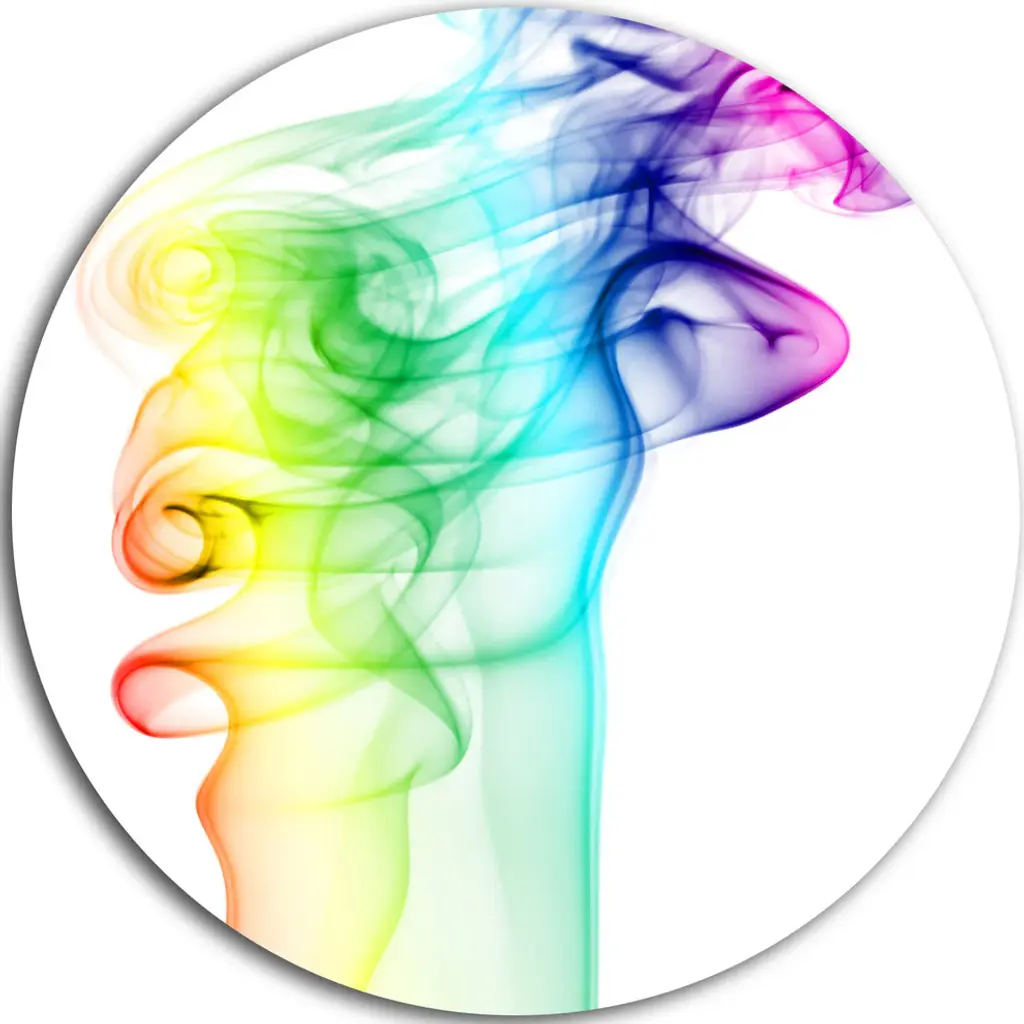 Bring Contemporary Abstraction to your home with this large Circle Metal wall art. This Colorful Abstract Smoke Waves Metal Artwork makes it the focal point of any room or office. - White Gloss Coating ensures colors are extra vibrant with light reflection.- Aluminum grade Sheet Metal with 1 inch mounting frame on the back giving the illusion that the artwork is floating on the wall..- Mounting Brackets are included along with instructions.- High Quality Digital images are created directly into a glossy aluminum panel producing a stunning and captivating print into the glossy finish of the metal.- Water, Fire and Scratch resistant HD Aluminum panels.- Looks better than any photo paper and guaranteed to last at least 20 years- Easy to clean with a microfiber cloth. Colors are far superior to regular Canvas Art. - Easy to Hang