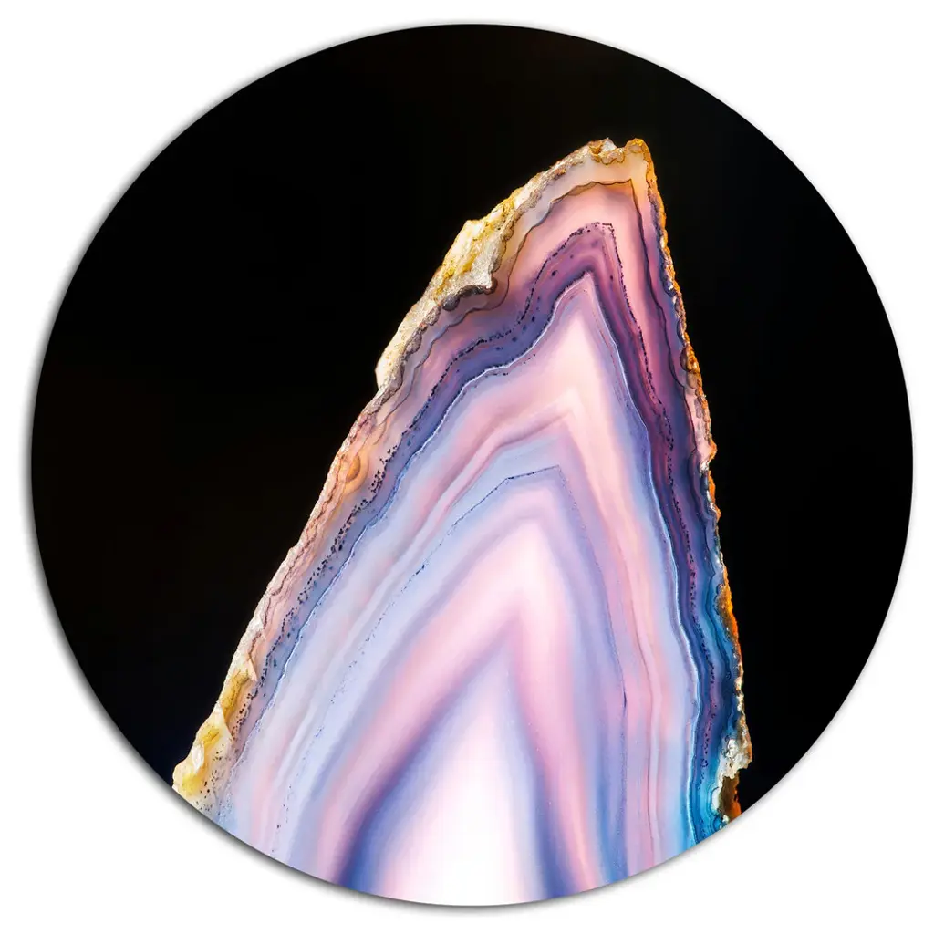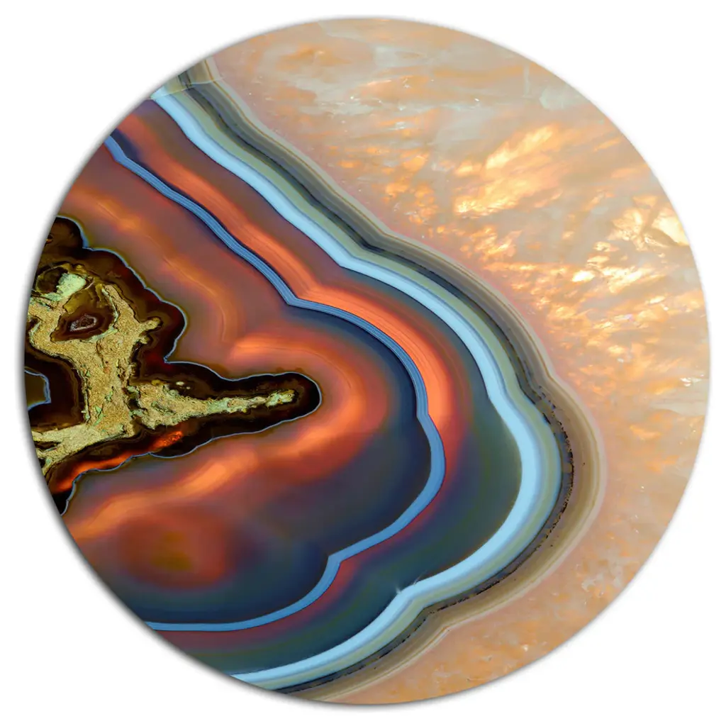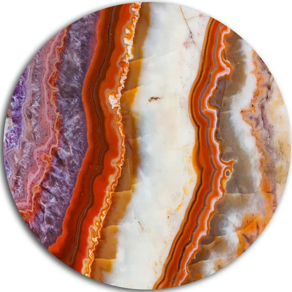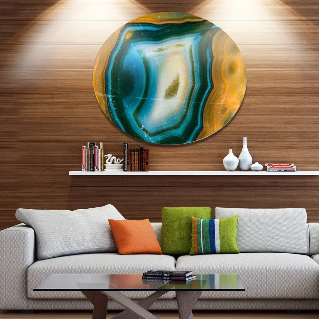 Bring Contemporary Abstraction to your home with this large Circle Metal wall art. This Colorful Agate Pattern Metal Artwork makes it the focal point of any room or office. - White Gloss Coating ensures colors are extra vibrant with light reflection.- Aluminum grade Sheet Metal with 1 inch mounting frame on the back giving the illusion that the artwork is floating on the wall..- Mounting Brackets are included along with instructions.- High Quality Digital images are created directly into a glossy aluminum panel producing a stunning and captivating print into the glossy finish of the metal.- Water, Fire and Scratch resistant HD Aluminum panels.- Looks better than any photo paper and guaranteed to last at least 20 years- Easy to clean with a microfiber cloth. Colors are far superior to regular Canvas Art. - Easy to Hang