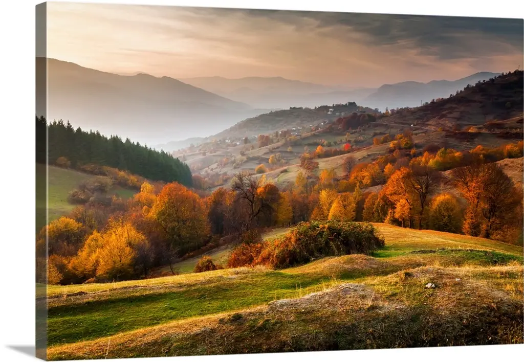 Colorful Autumn Landscape In Mountains, Landscape Canvas Art Print, 60"x28"