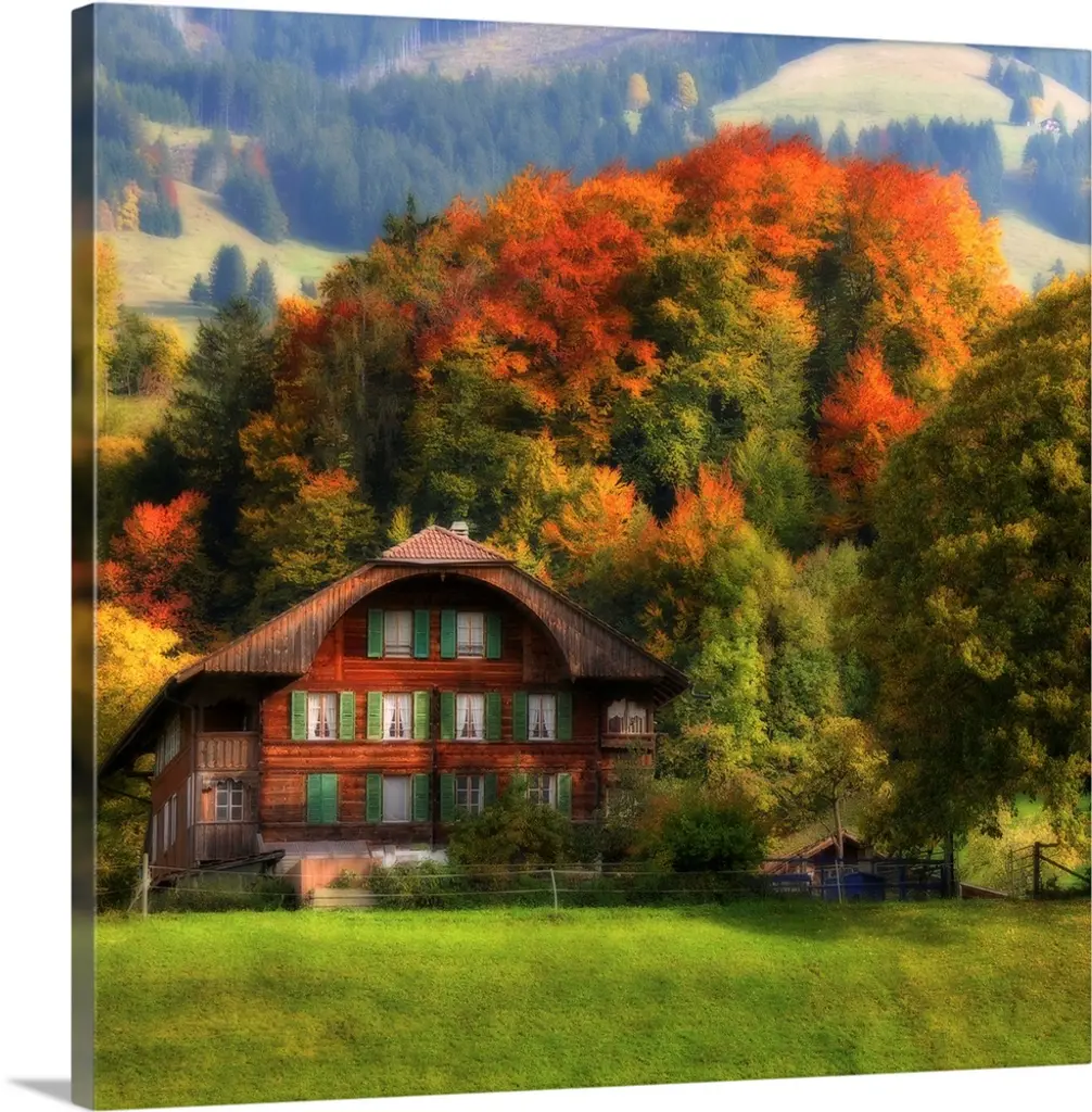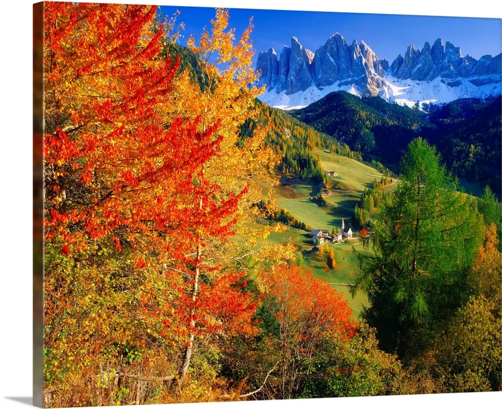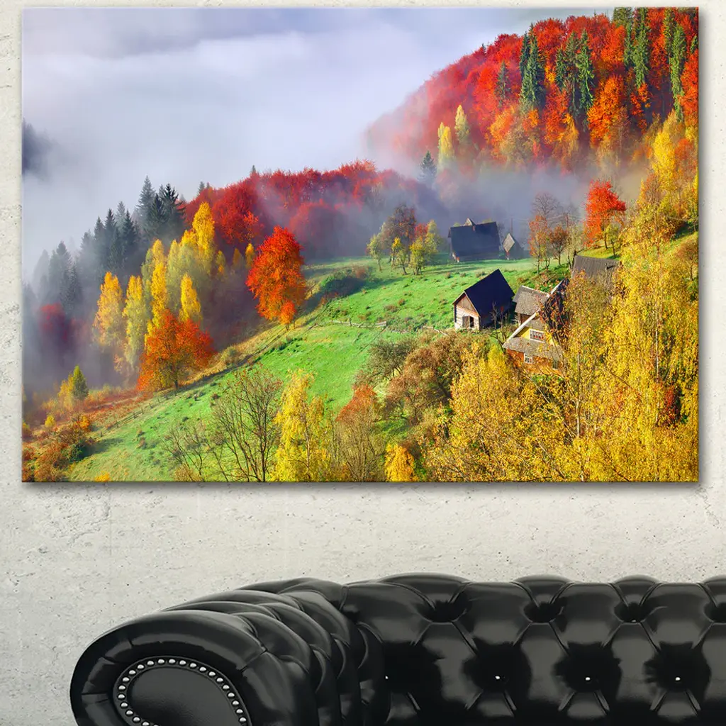Colorful Autumn Landscape In Mountains, Landscape Canvas Art Print, 60"x28"