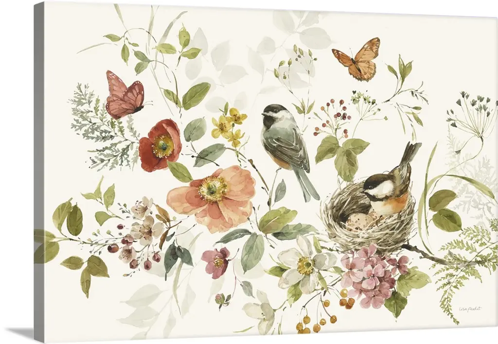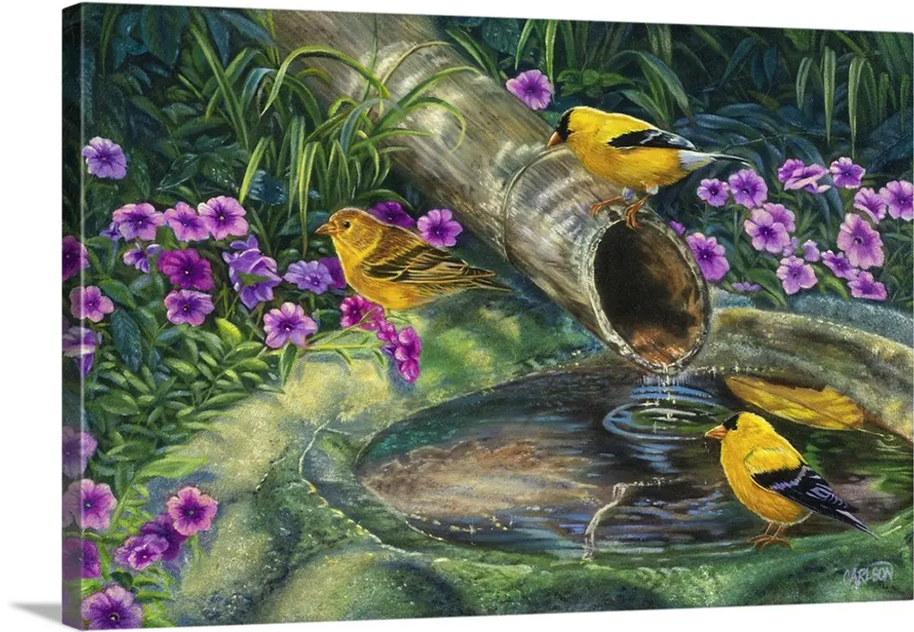 "Colorful Birds Sitting On Branches" Canvas Print, 32"x16"