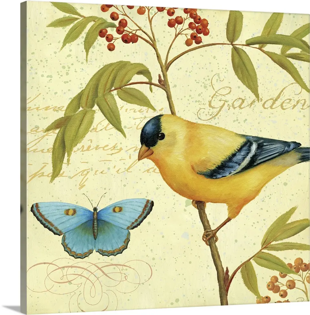 "Colorful Birds Sitting On Branches" Canvas Print, 40"x30"