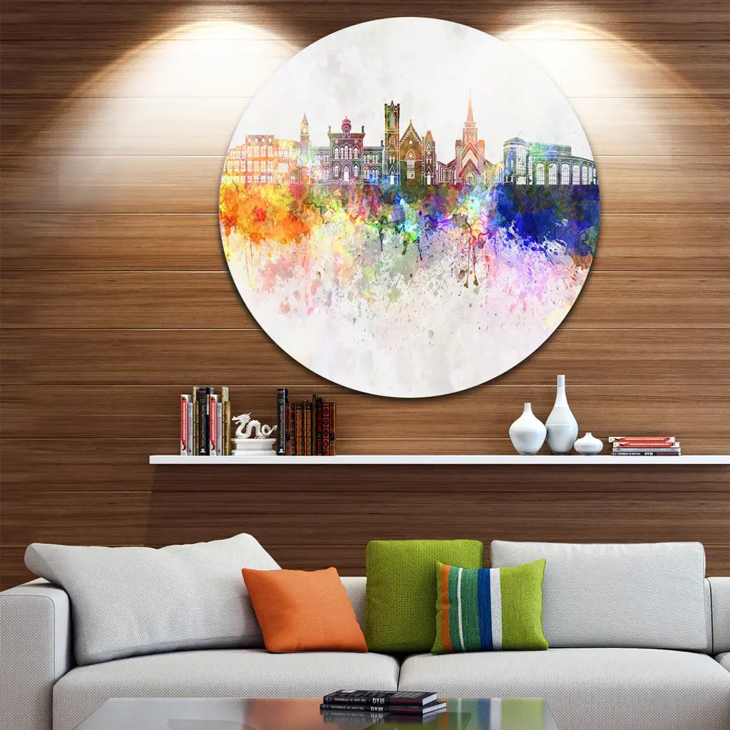 Colorful Brampton Skyline, Cityscape Painting Disc Metal Wall Art, 11"