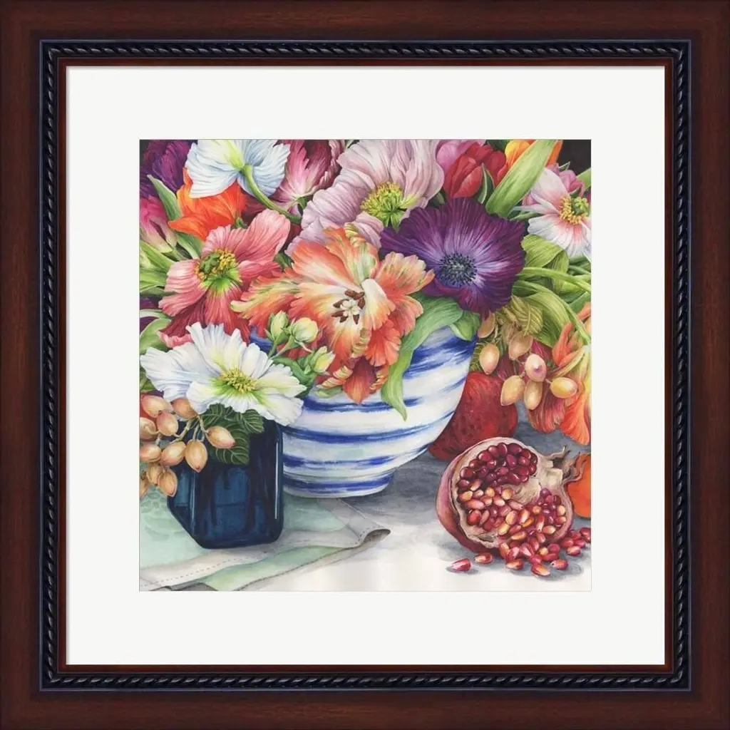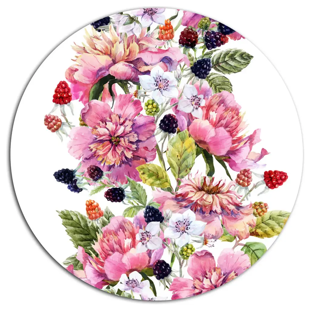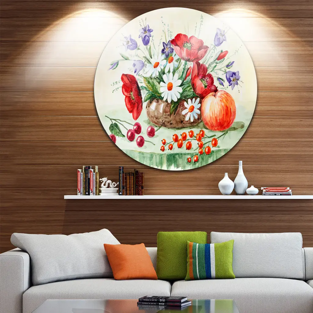 Colorful Bunch Of Flowers And Fruits, Floral Disc Metal Artwork, 11"